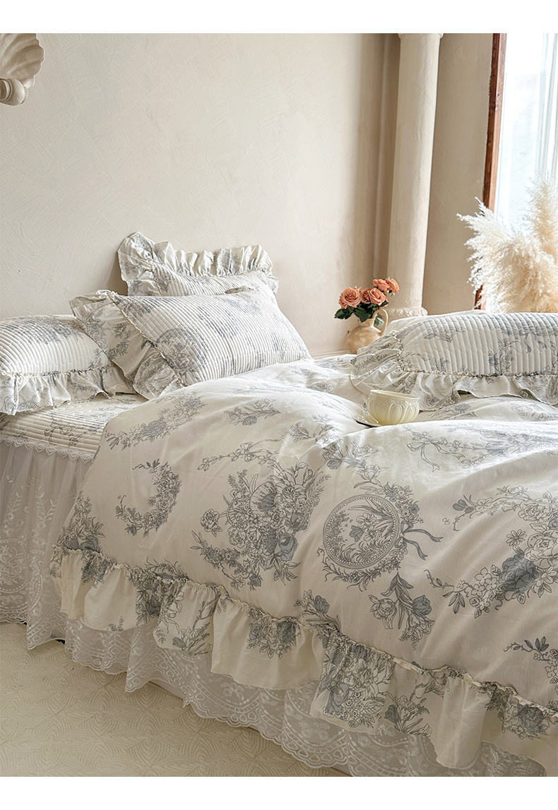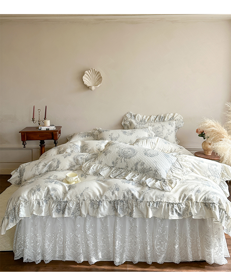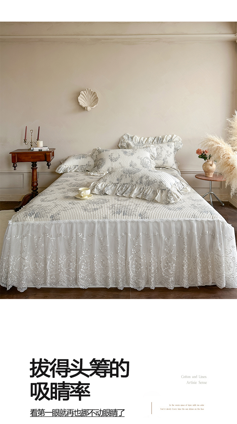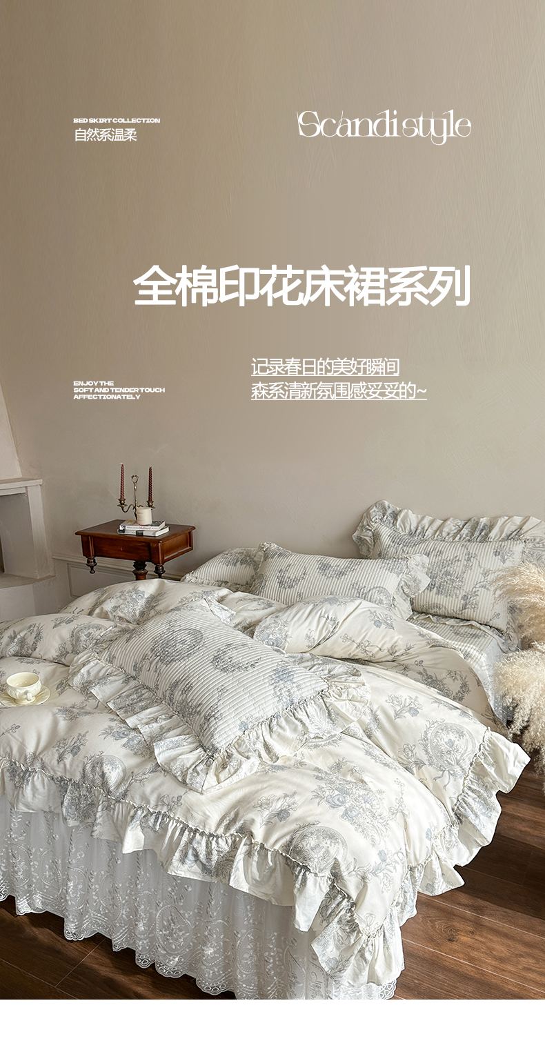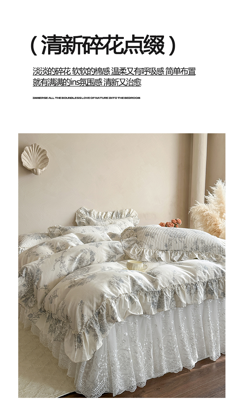 商品名称:瑞宝 2026新款法式全棉印花床裙四件套 淡陌