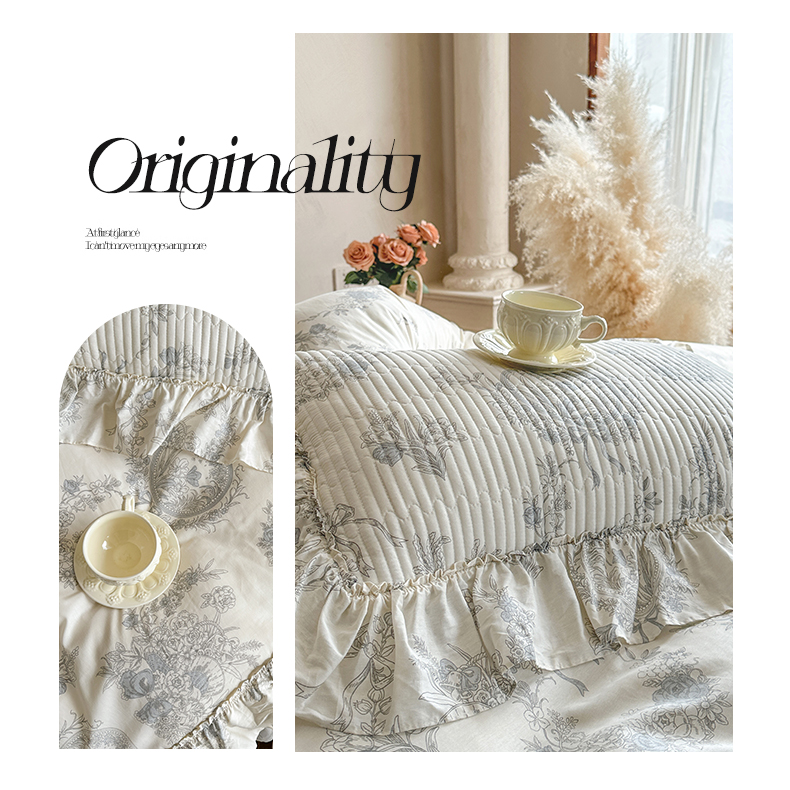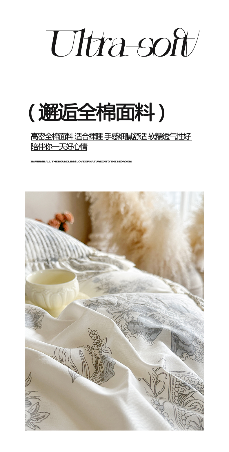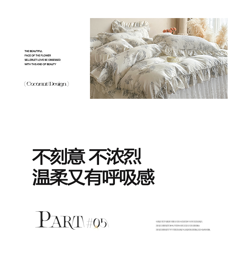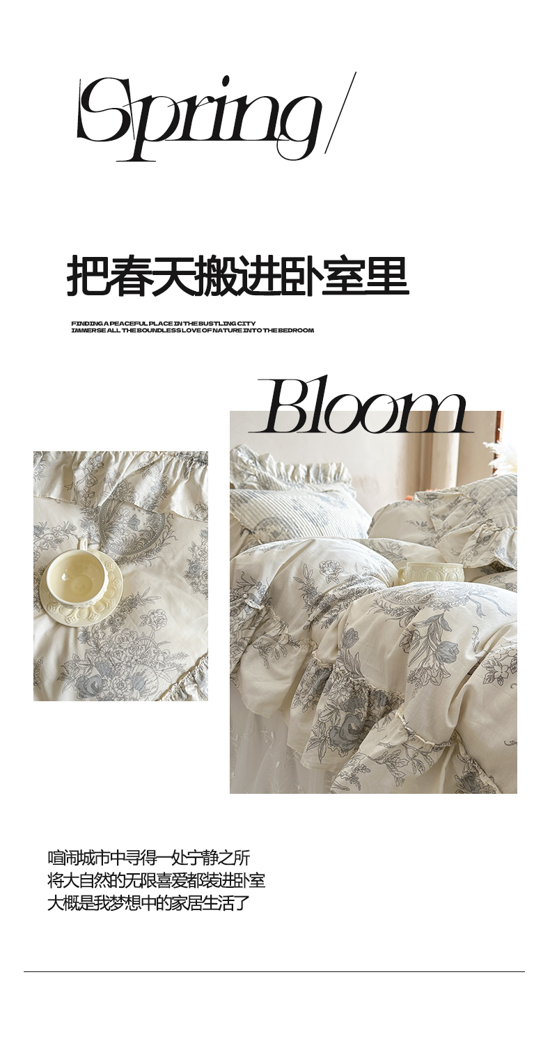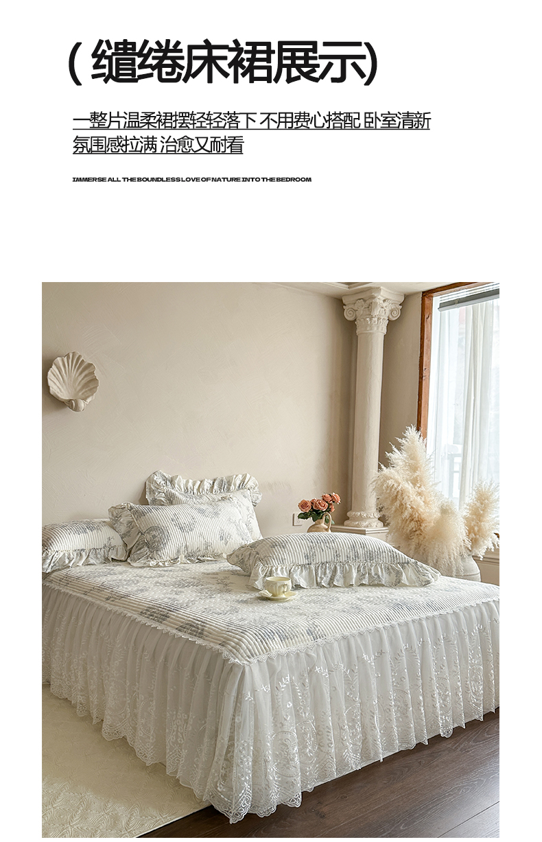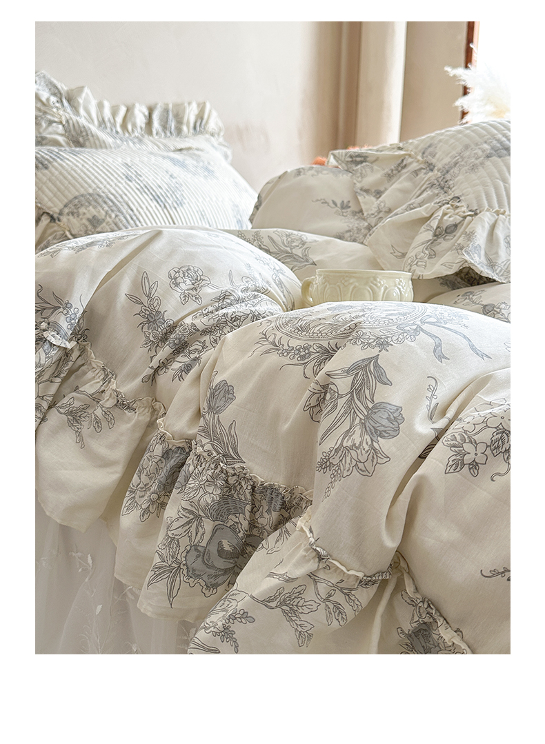 商品名称:瑞宝 2026新款法式全棉印花床裙四件套 淡陌