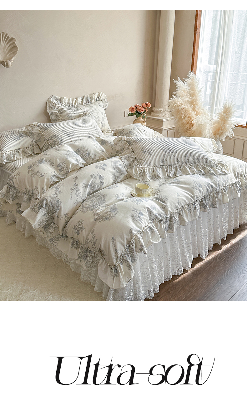 瑞宝 2026新款法式全棉印花床裙四件套 淡陌