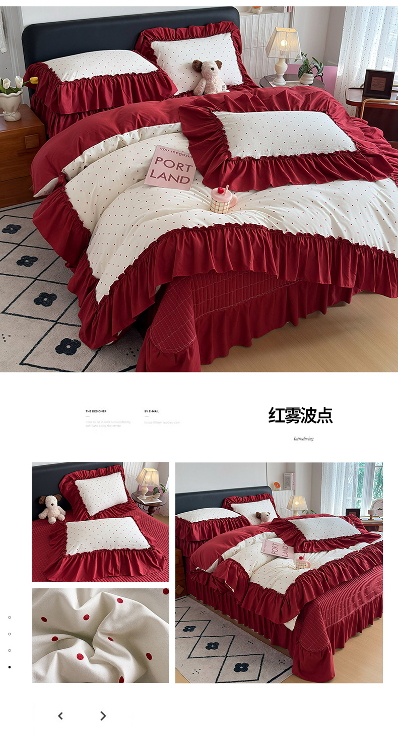 商品名称:梵克保罗 2026新款韩系古法韩国水洗棉云感棉法式浪漫大花边床盖四件套 奶粉kt