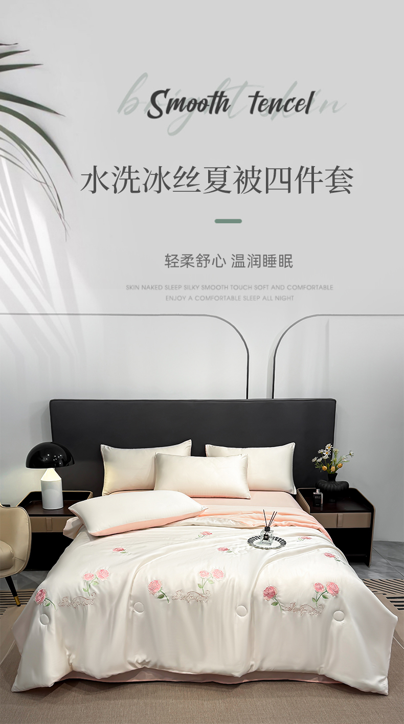 当前位置: 91家纺网 > 商品网购 > 床品套件 > 四件套 > 夏被四件套 > 恒畅 2026新款满绣水洗冰丝夏被夏被四件套 粉黛玫瑰-奶昔白粉