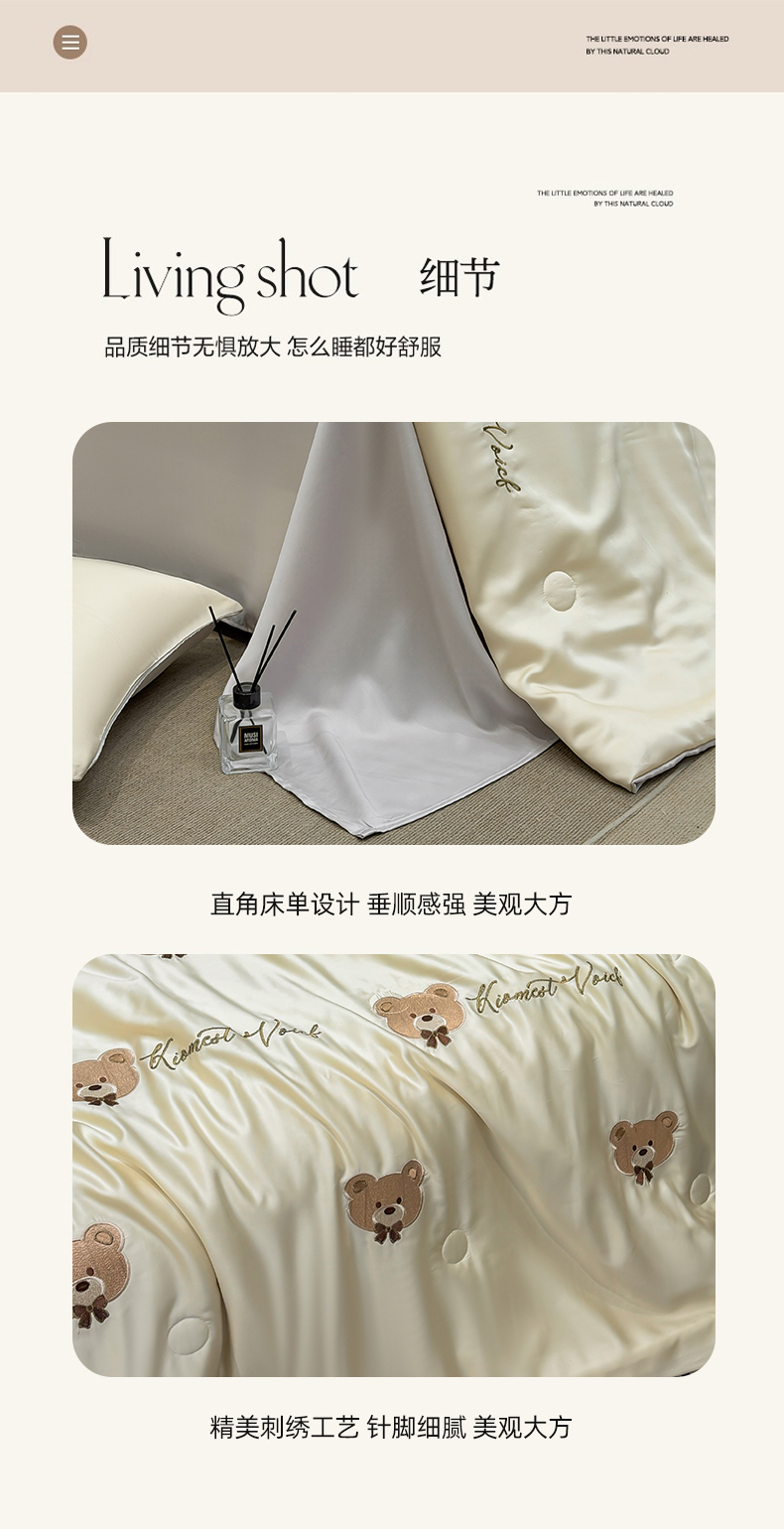 当前位置: 91家纺网 > 商品网购 > 床品套件 > 四件套 > 夏被四件套 > 恒畅 2026新款满绣水洗冰丝夏被夏被四件套 甜梦小熊-咖灰