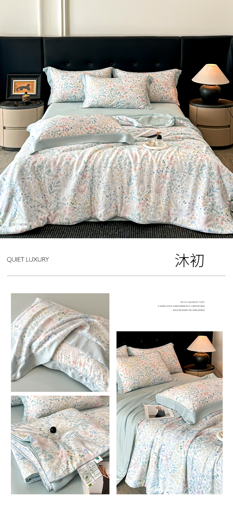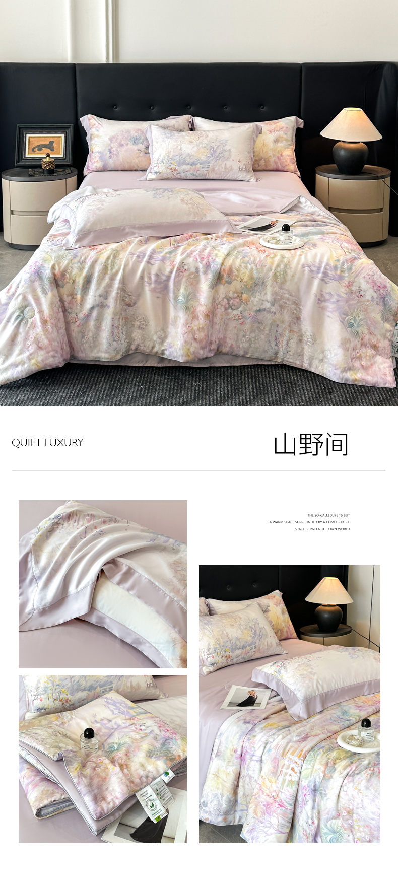 当前位置: 91家纺网 > 商品网购 > 床品套件 > 四件套 > 莱赛尔四件套 > 慕晨 2026新款大宽边高级简奢款凉感天丝莱赛尔数码印花丝滑丝绸四件套直播热款 柳语
