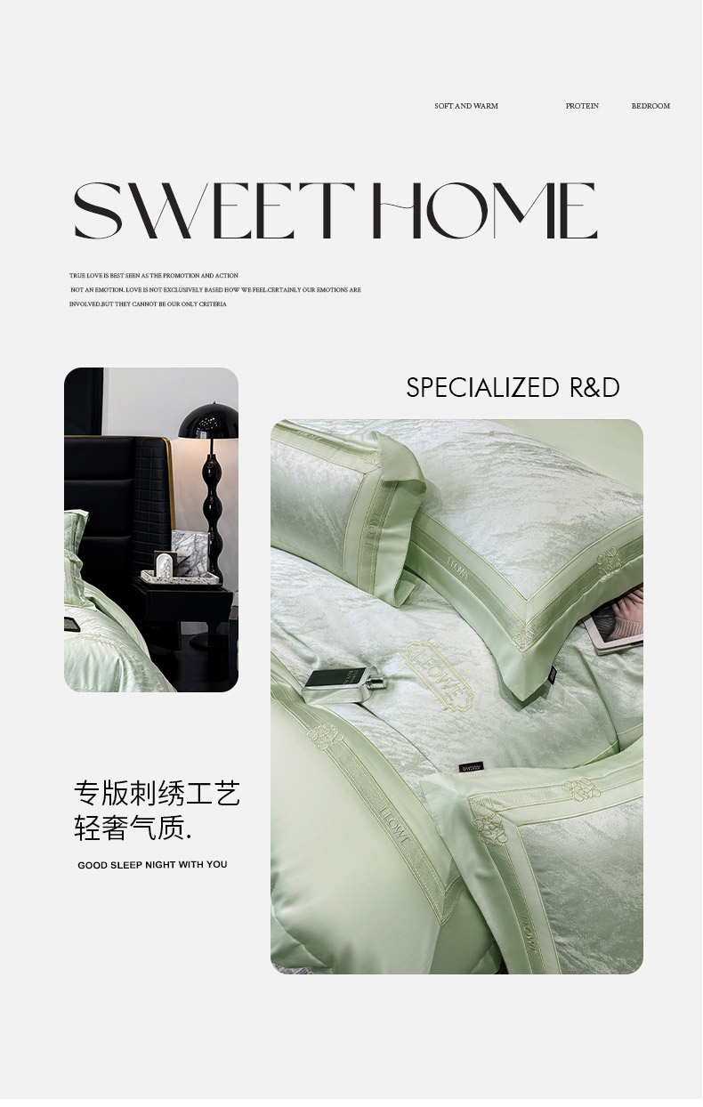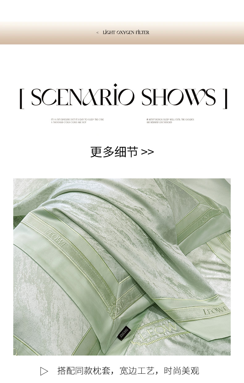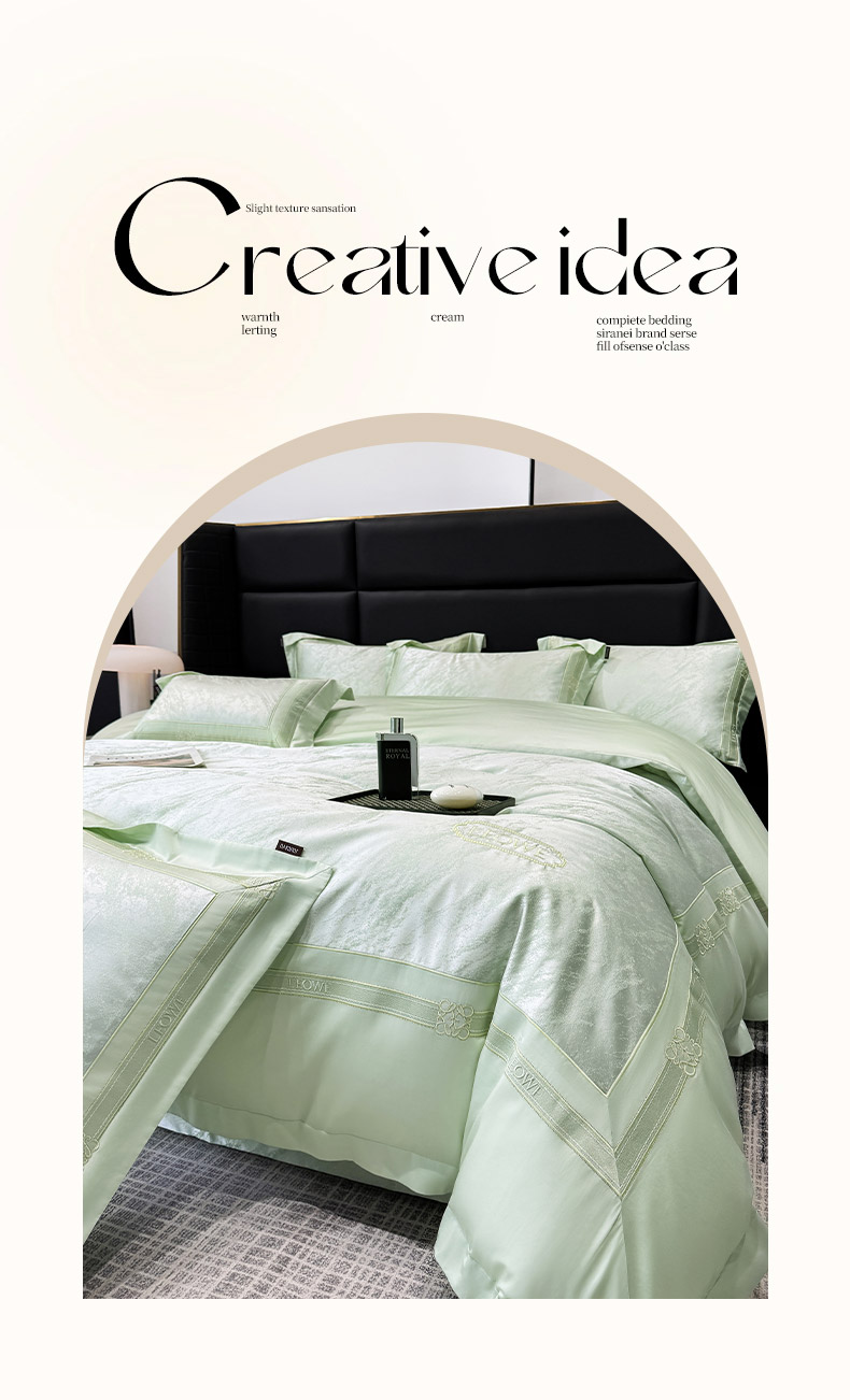 当前位置: 91家纺网 > 商品网购 > 床品套件 > 四件套 > 长绒棉四件套 > 爱妮菲家纺 2026春夏新品高端A类贡缎提花长绒棉纯棉四件套100全棉提花被套床单床笠高级感床上用品-慕笙 慕笙-浅松绿