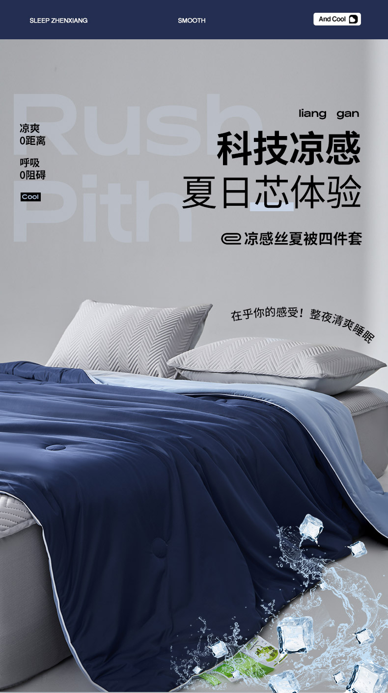 商品名称:吾诺家居 2026新款冰爽系列-凉感丝夏被四件套 蔚蓝