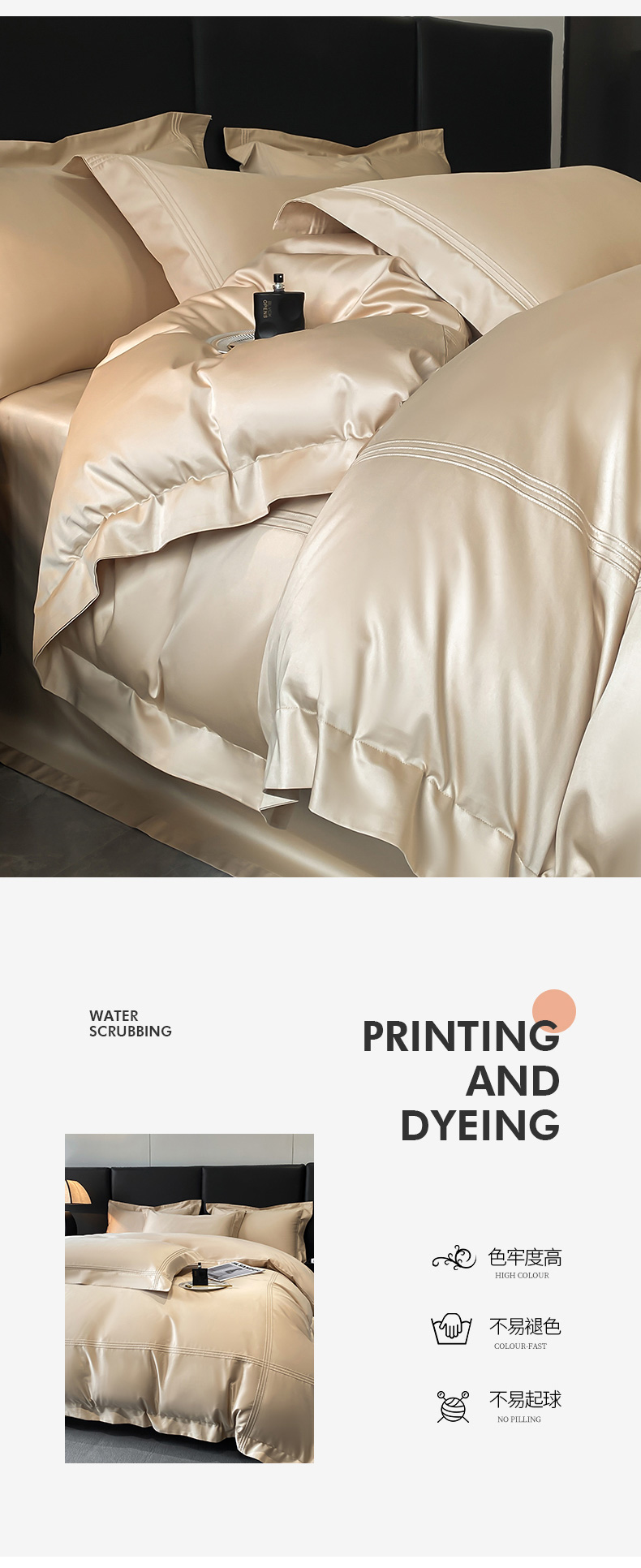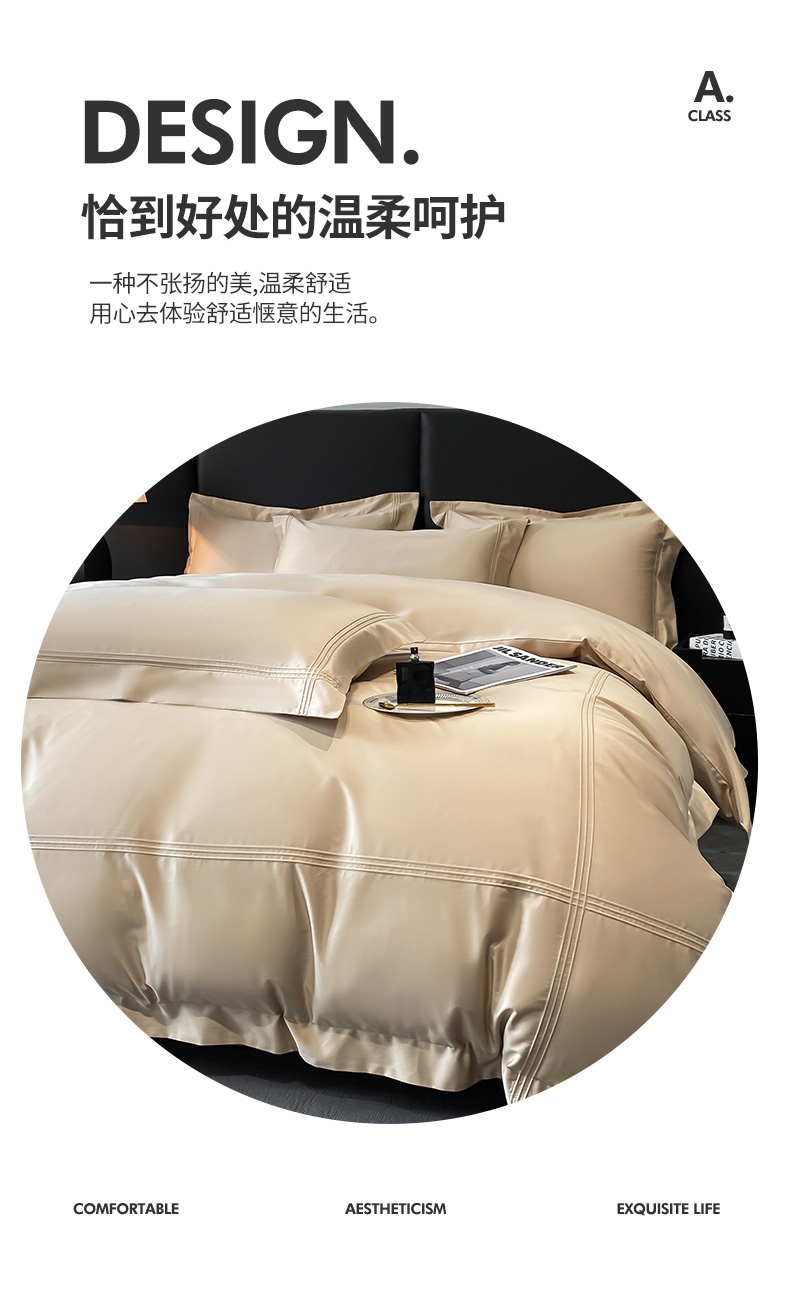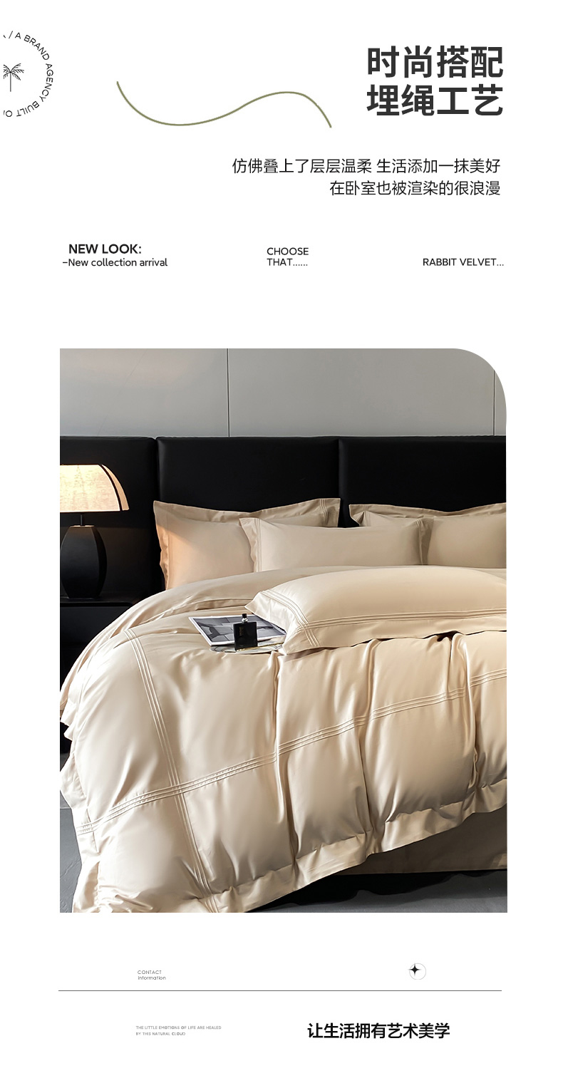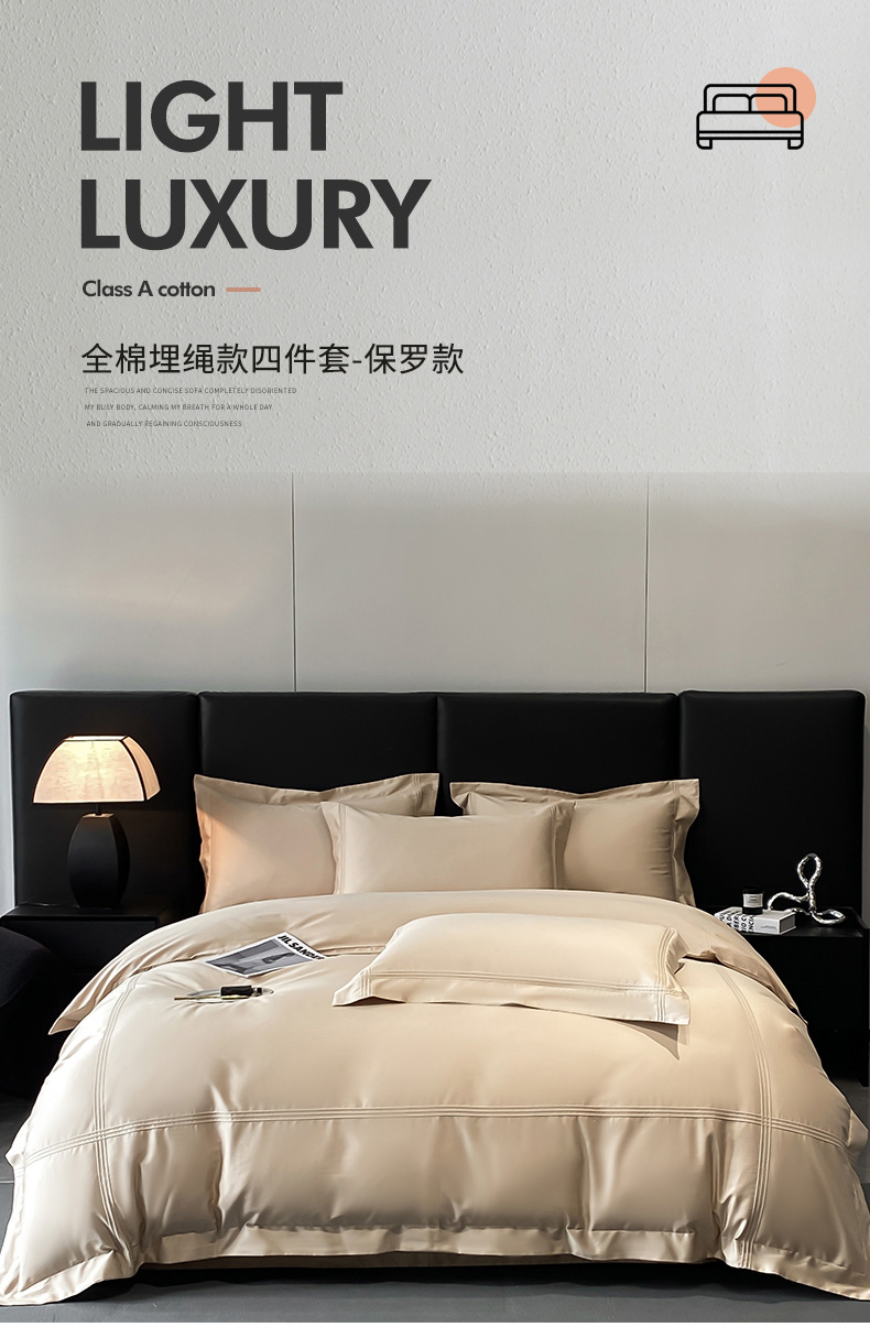 商品名称:水云缦 2026新款全棉埋绳款四件套系列-保罗款 香槟金