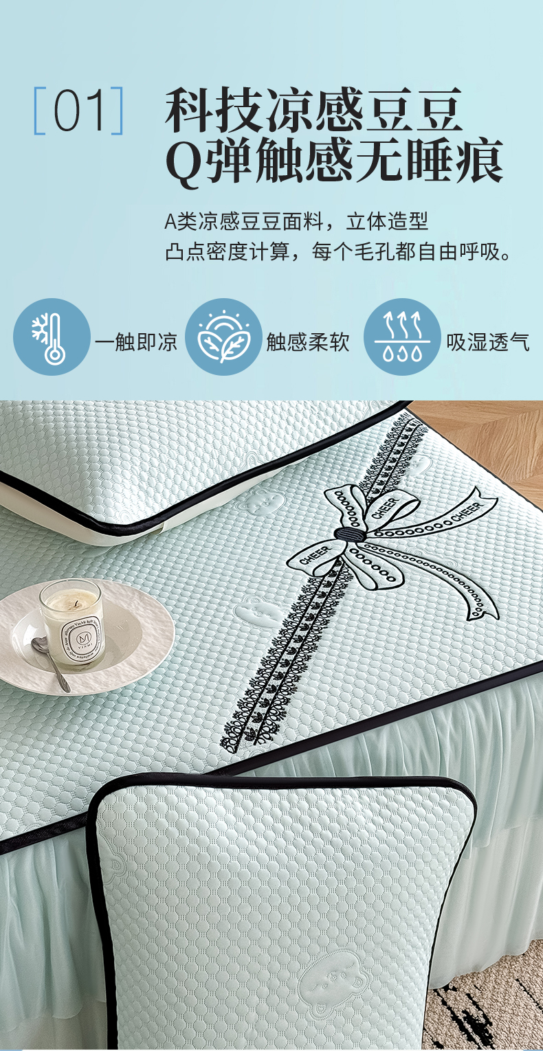 当前位置: 91家纺网 > 商品网购 > 床上用品 > 凉席 > 其他凉席 > 卡罗兰 2026新款豆豆冰丝凉席夏被复合三明治蝴蝶结床裙三件四件套 蝴蝶结-水绿色