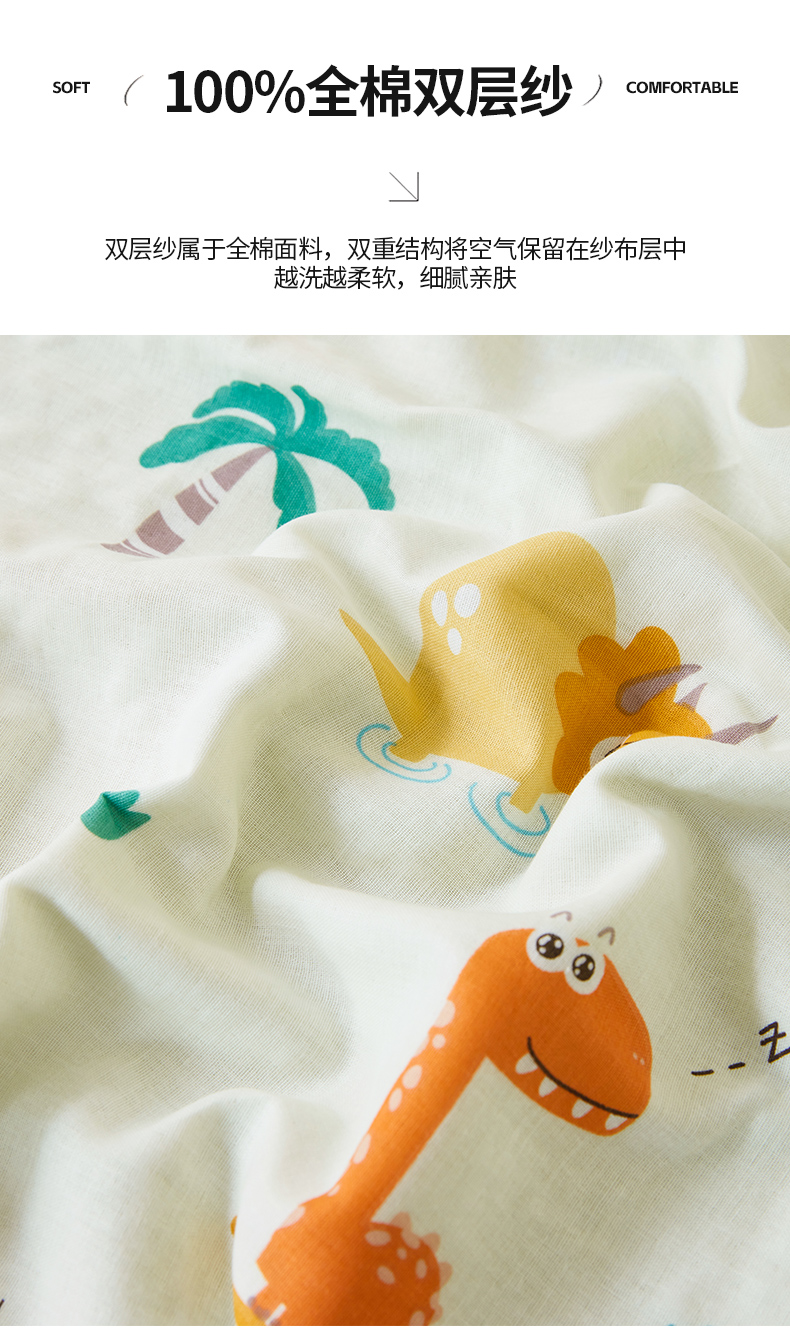 商品名称:嗨生活 2026新款7A抗菌全棉纱布夏被儿童夏被幼儿园夏被夏被毯 恐龙世纪