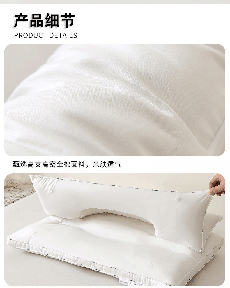 (总)仁宇枕业 20266新款纯棉二合一牵引枕头多功能护颈枕头按摩舒适spa枕头酒店枕头枕芯