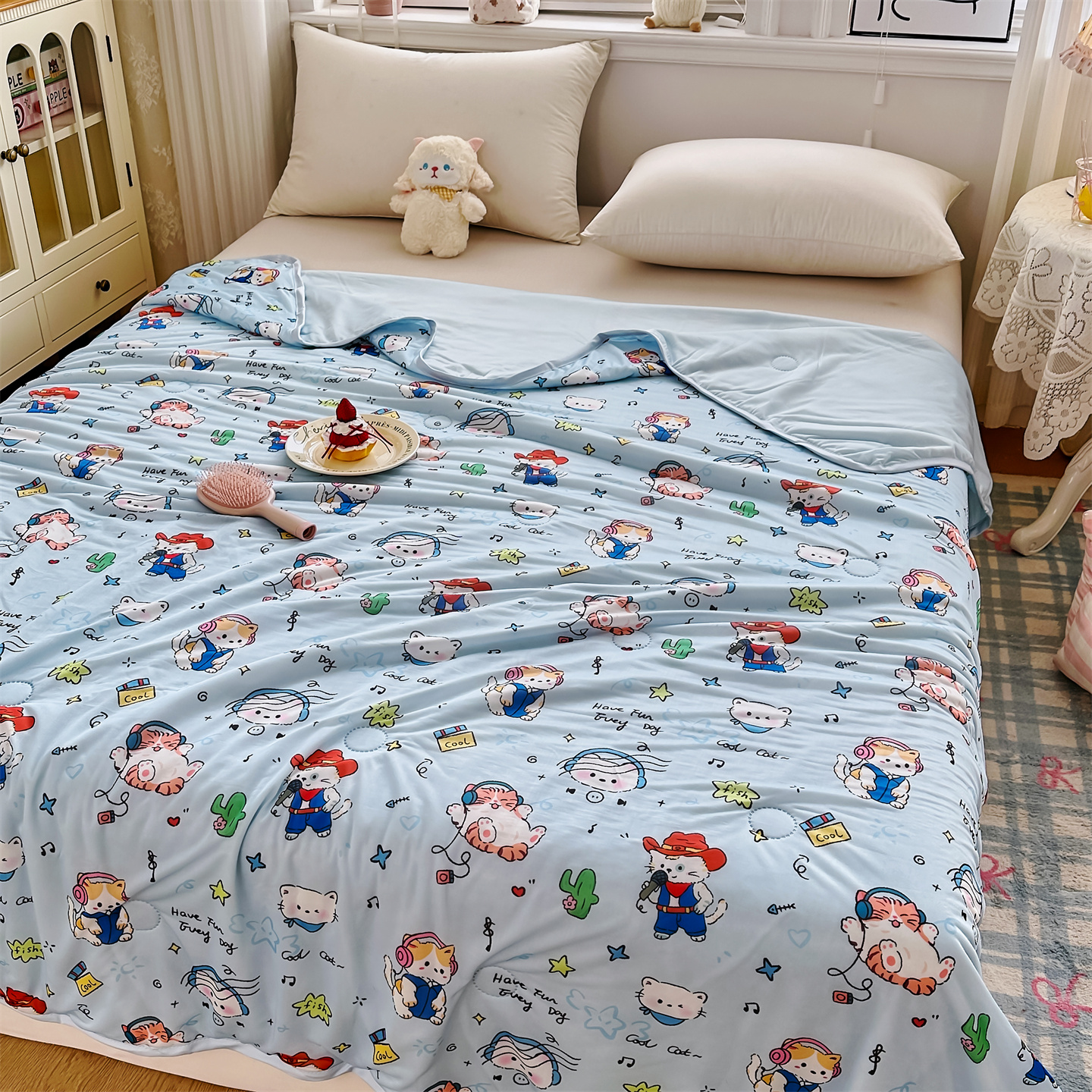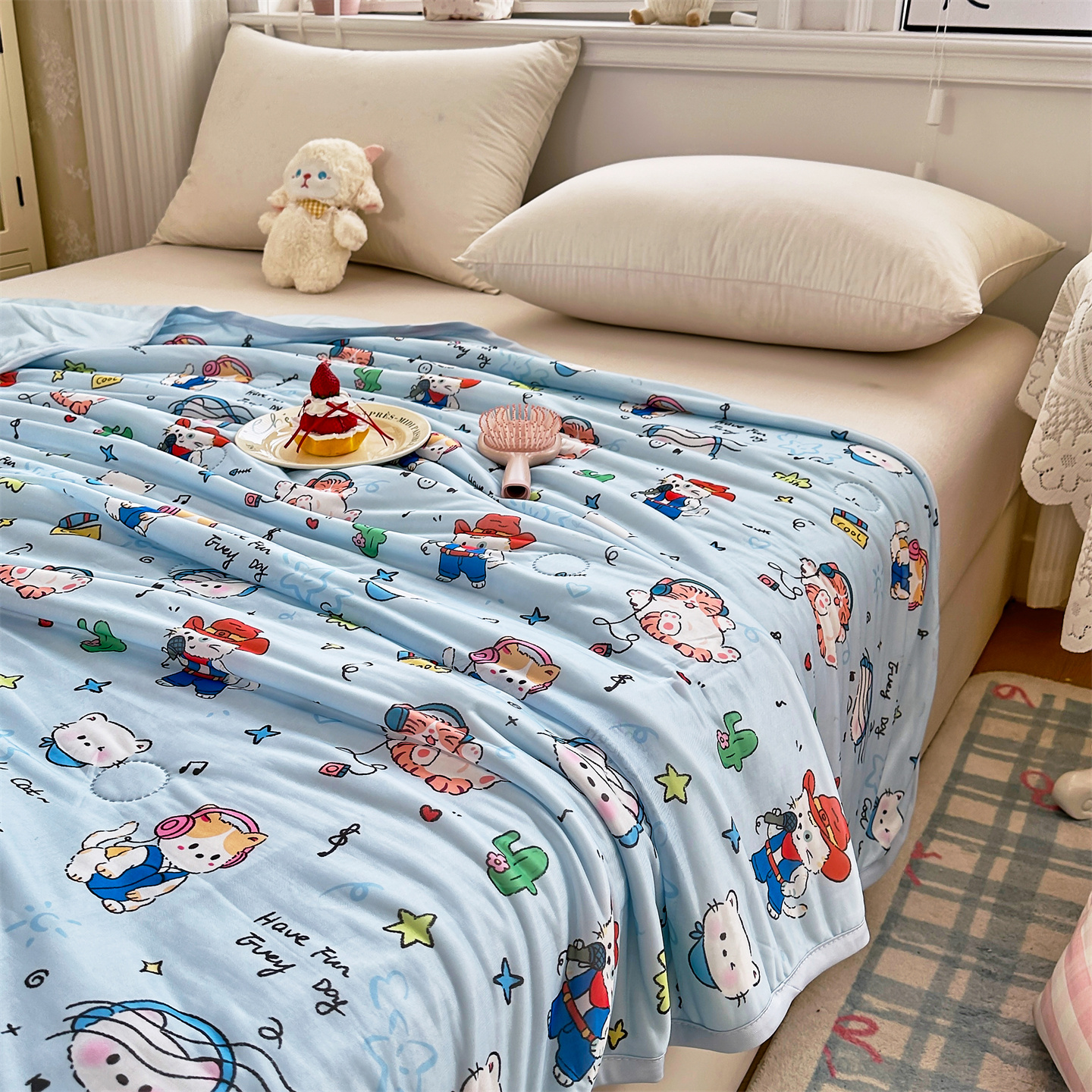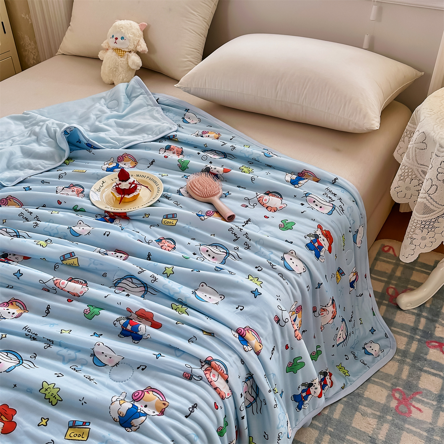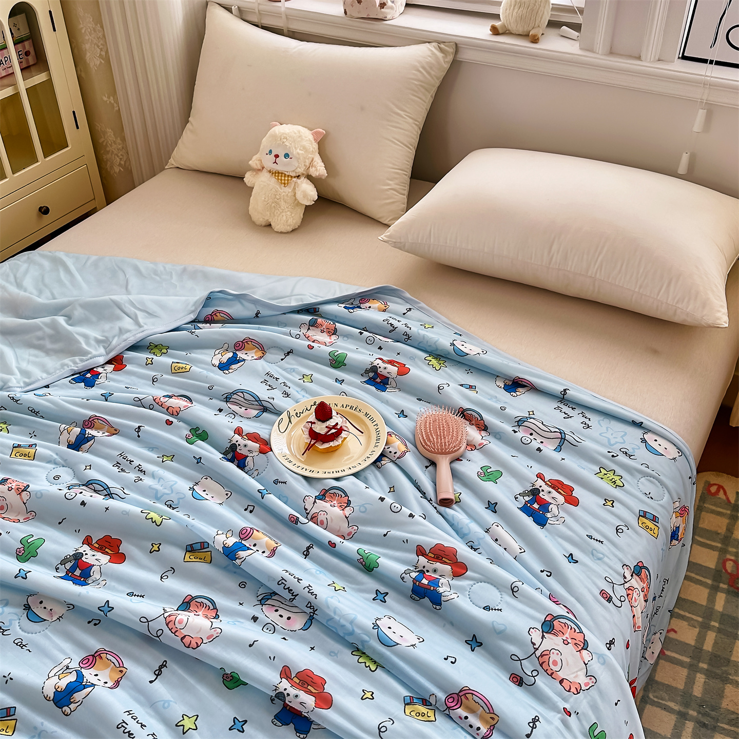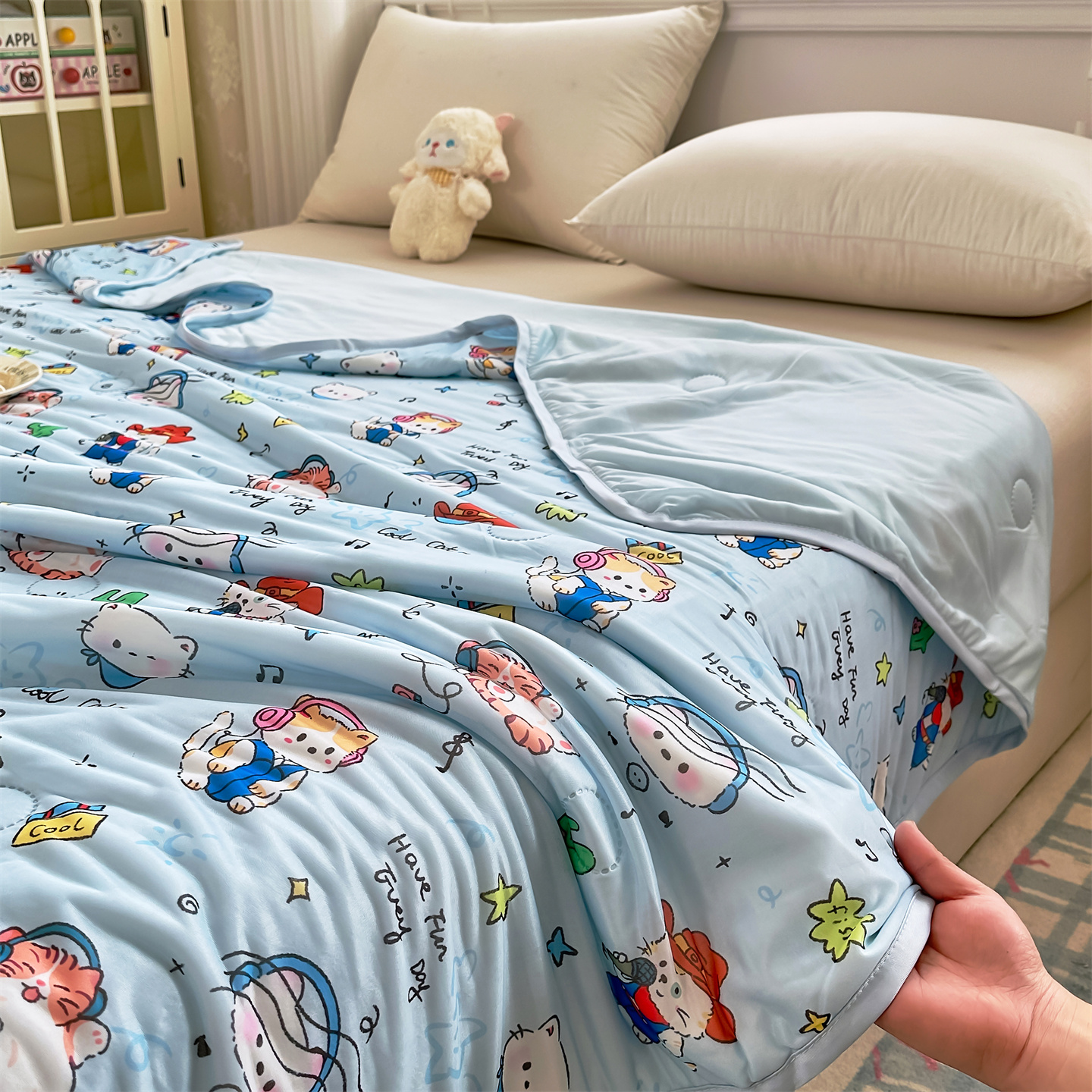 (总)欣宜家纺 2026新款母婴级卡通冰淇淋夏被夏凉空调冰丝薄款被芯可机洗凉感丝冰皮被子 被子被芯,粉小猫,乖乖狗,摇滚猫