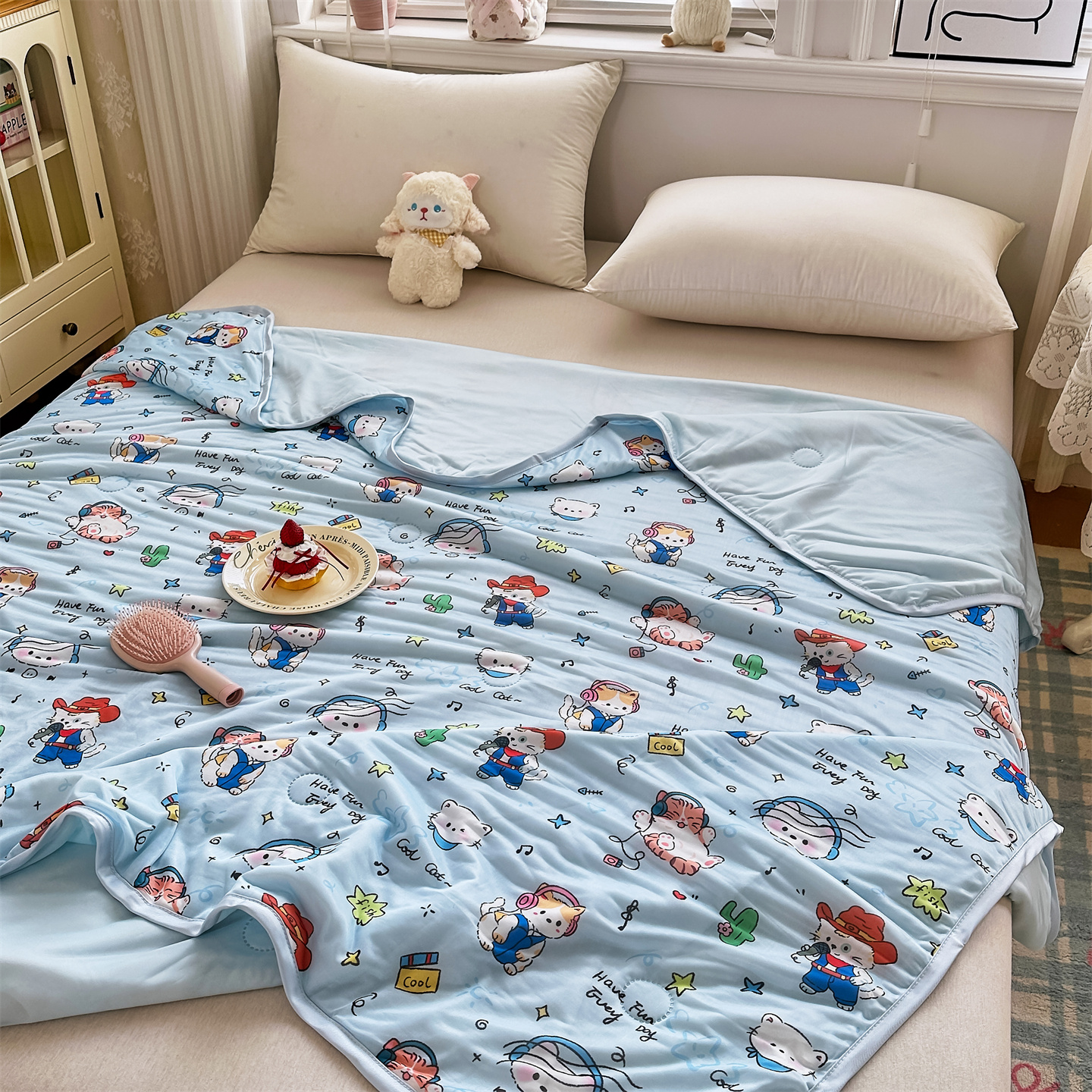 被子 > 夏被 > 欣宜家纺 2026新款母婴级卡通冰淇淋夏被夏凉空调冰丝薄款被芯可机洗凉感丝冰皮被子 被子被芯 摇滚猫