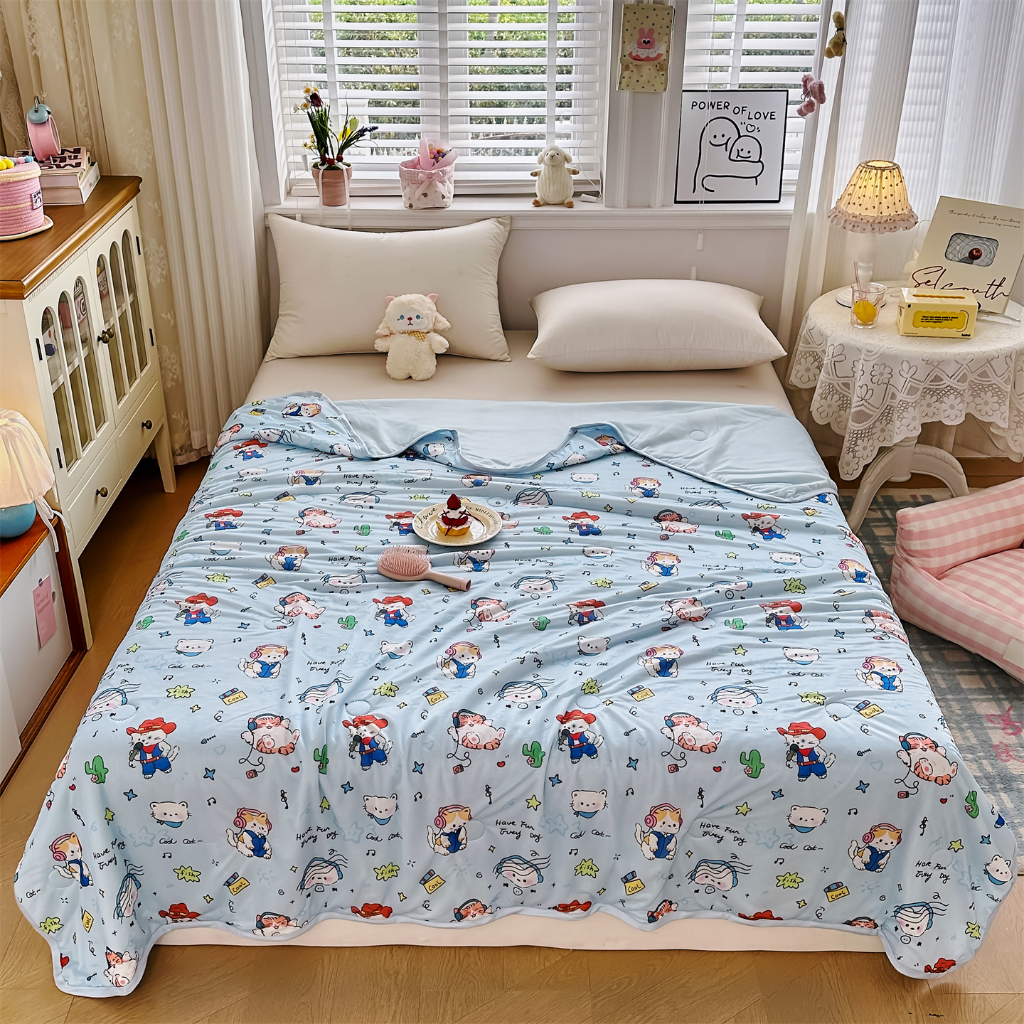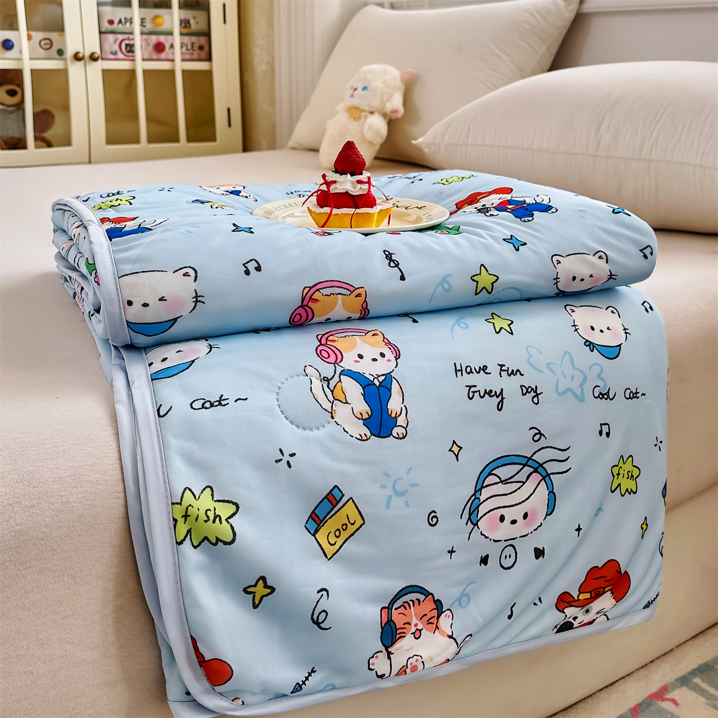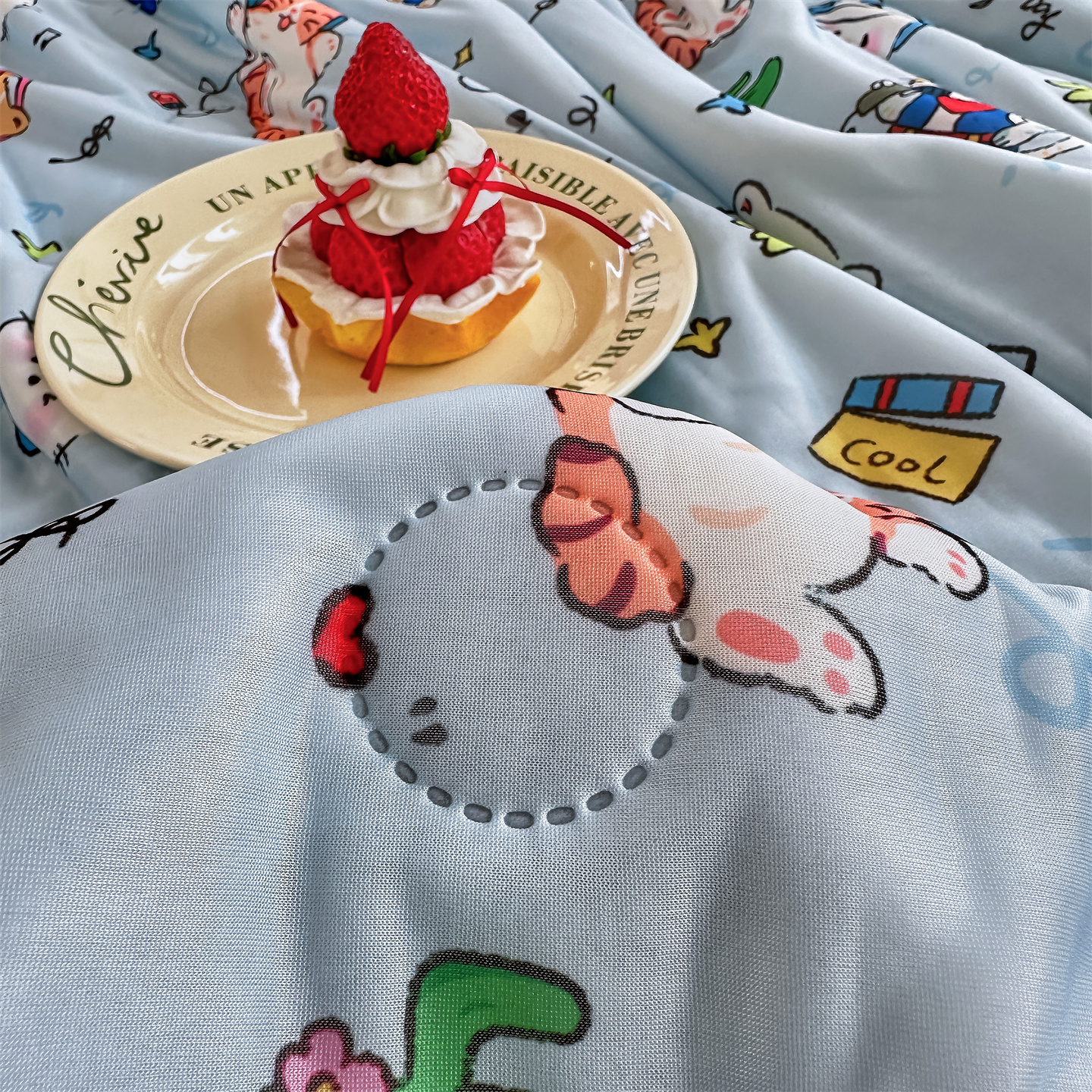 商品名称:欣宜家纺 2026新款母婴级卡通冰淇淋夏被夏凉空调冰丝薄款被芯可机洗凉感丝冰皮被子 被子被芯 摇滚猫