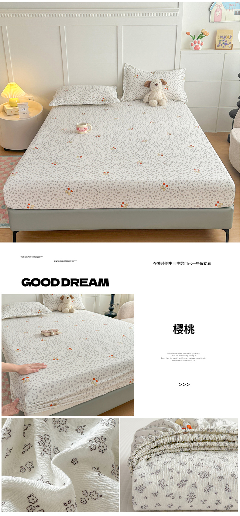 商品名称:(总)默忆 2026春夏新款a类泡芙双层纱床笠印花卡通全包围床垫保护套单床笠 床笠单件