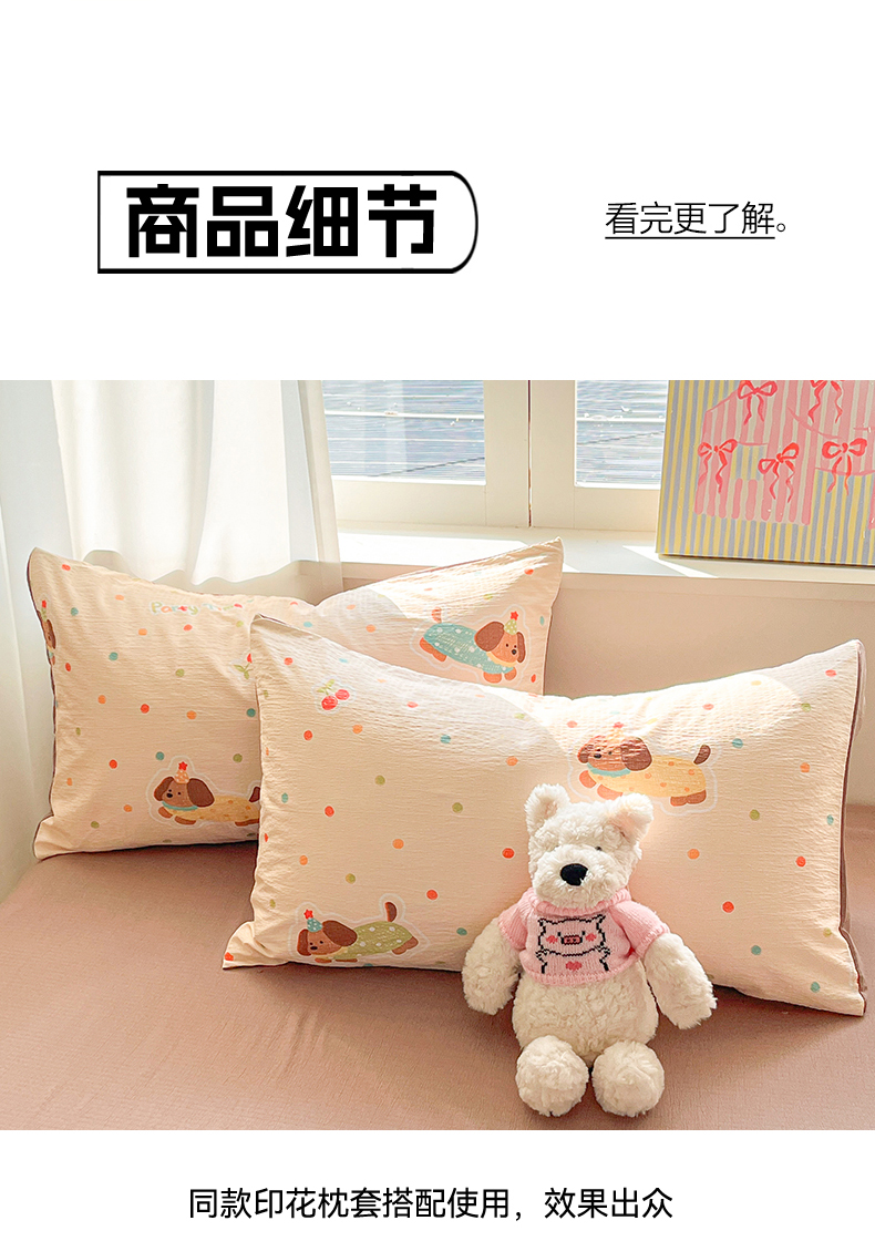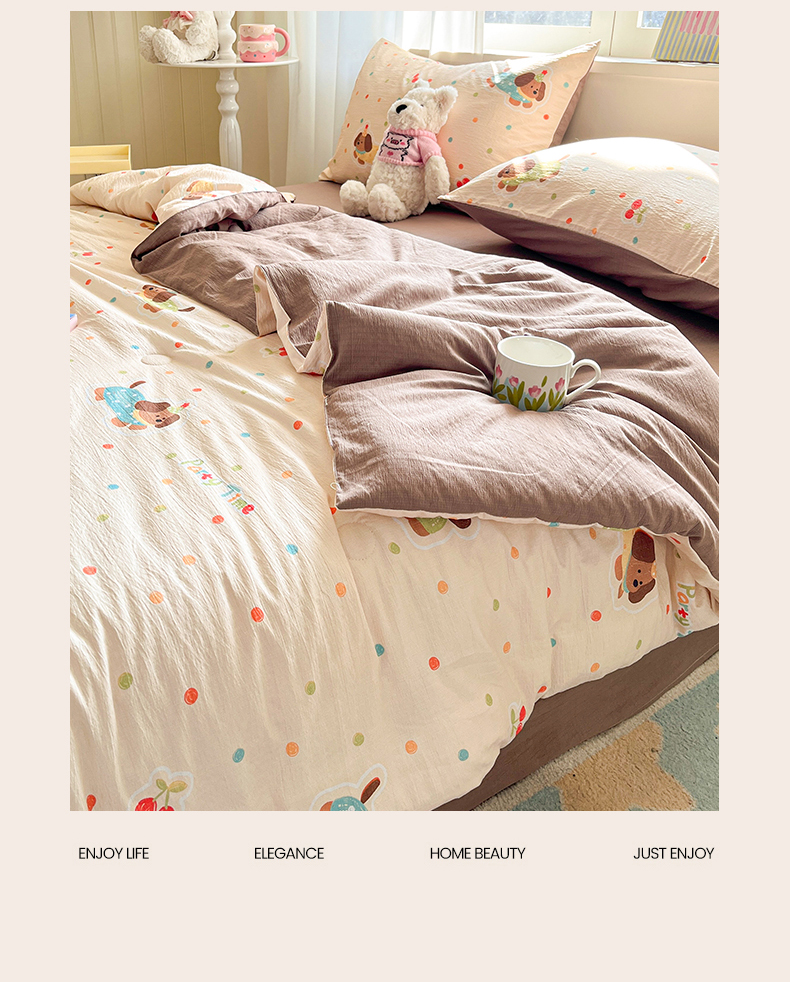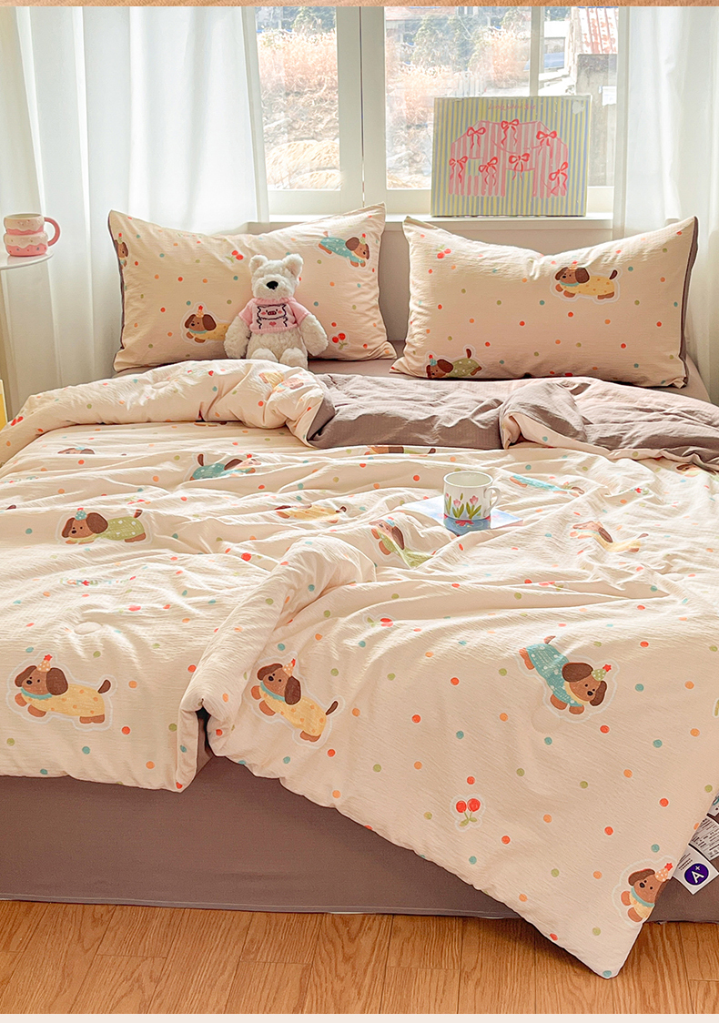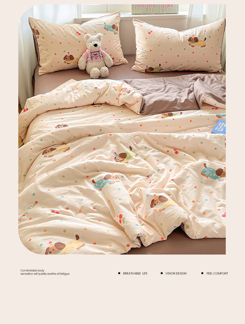 盛秋家纺 2026新款皱皱纱印花夏被-萝拉 派对狗+深咖