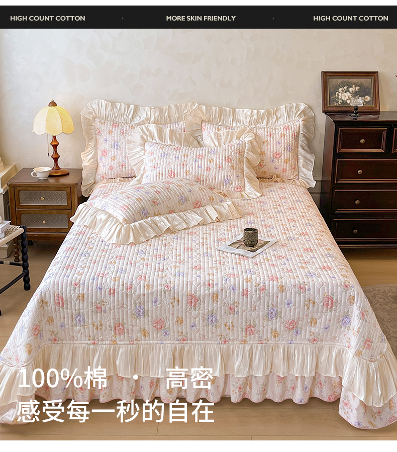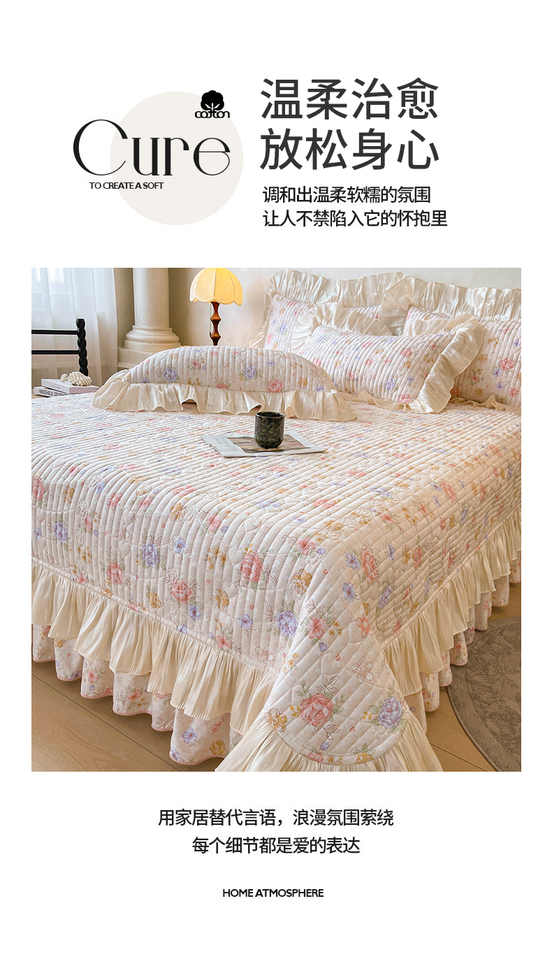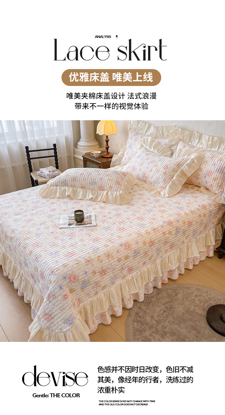当前位置: 91家纺网 > 商品网购 > 床品套件 > 三件套 > 宜凡家纺 2026新款全棉印花公主风夹棉床盖三件套 梦娜