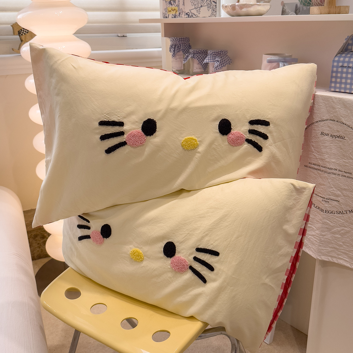 (总)曼谷家纺 2026年 水洗棉兔毛贴布绣四件套被套床单学生双人,菲菲兔-波点,菲菲兔-芝士樱桃,躲猫猫,可爱猫-碎花,可爱猫-芝士粉小格