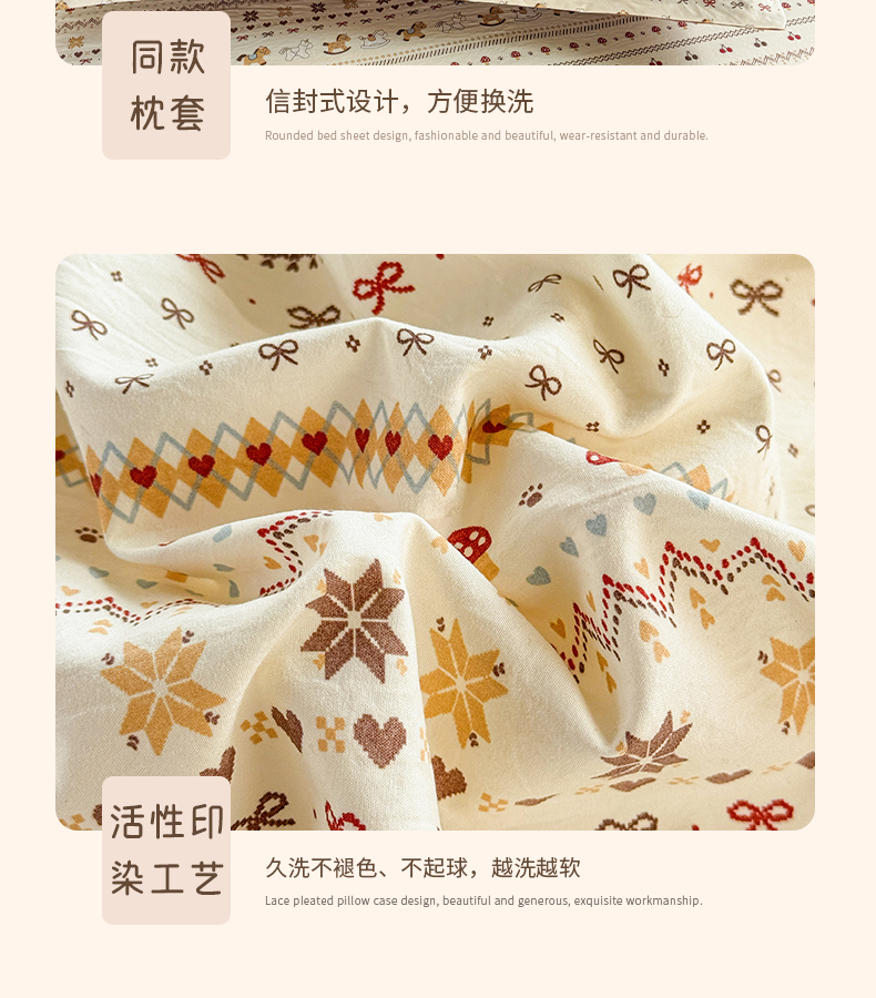 (总)禧缘家纺(原梦想家) 2026新款小清新皱皱纱木棉床裙式床笠印花单枕套,彩虹,蝶梦,花田,沐春,南瓜,泡芙,甜筒,童话,兔兔,雾迟,星星,月光