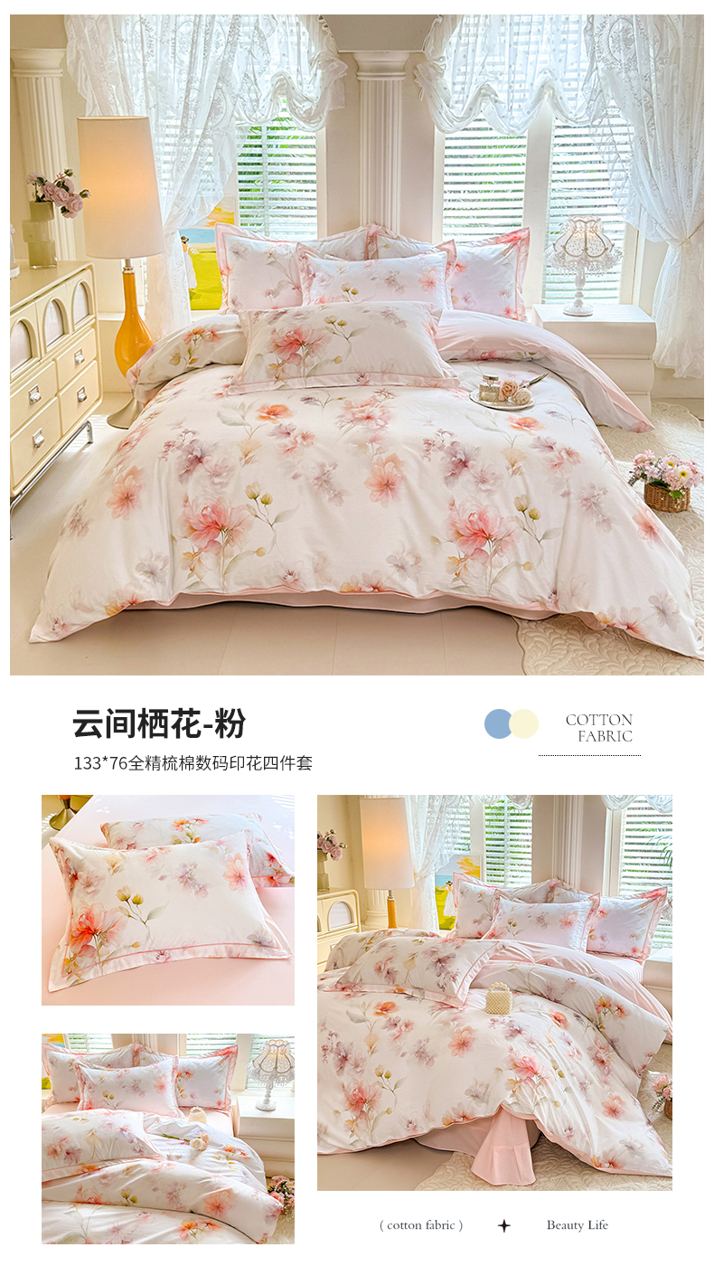 当前位置: 91家纺网 > 商品网购 > 床品套件 > 四件套 > 全棉普通四件套 > 巧玲珑 2026新款全棉纯棉13376数码印花四件套 悦下花影-粉