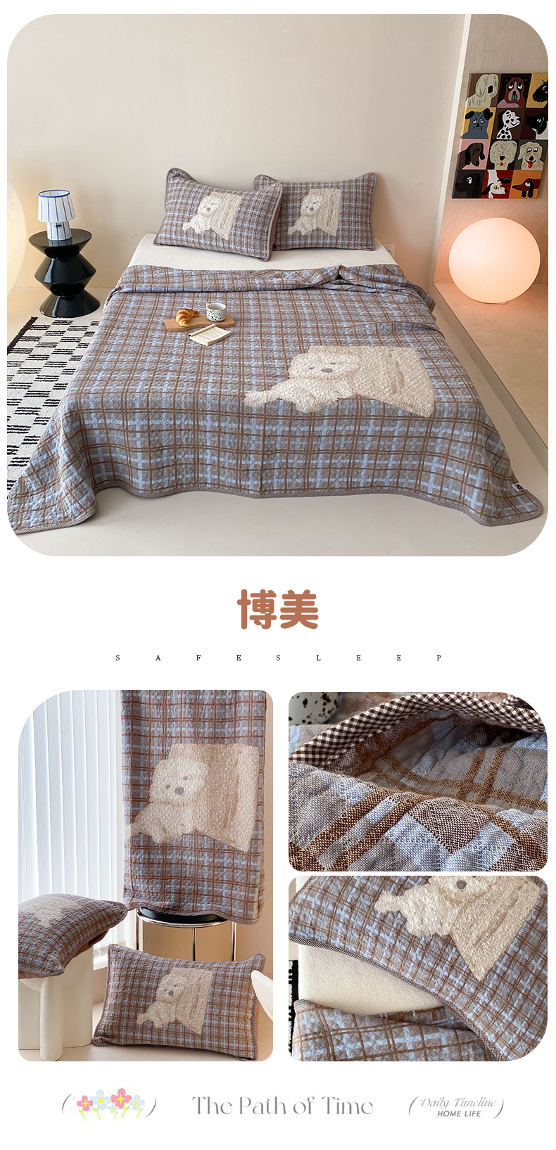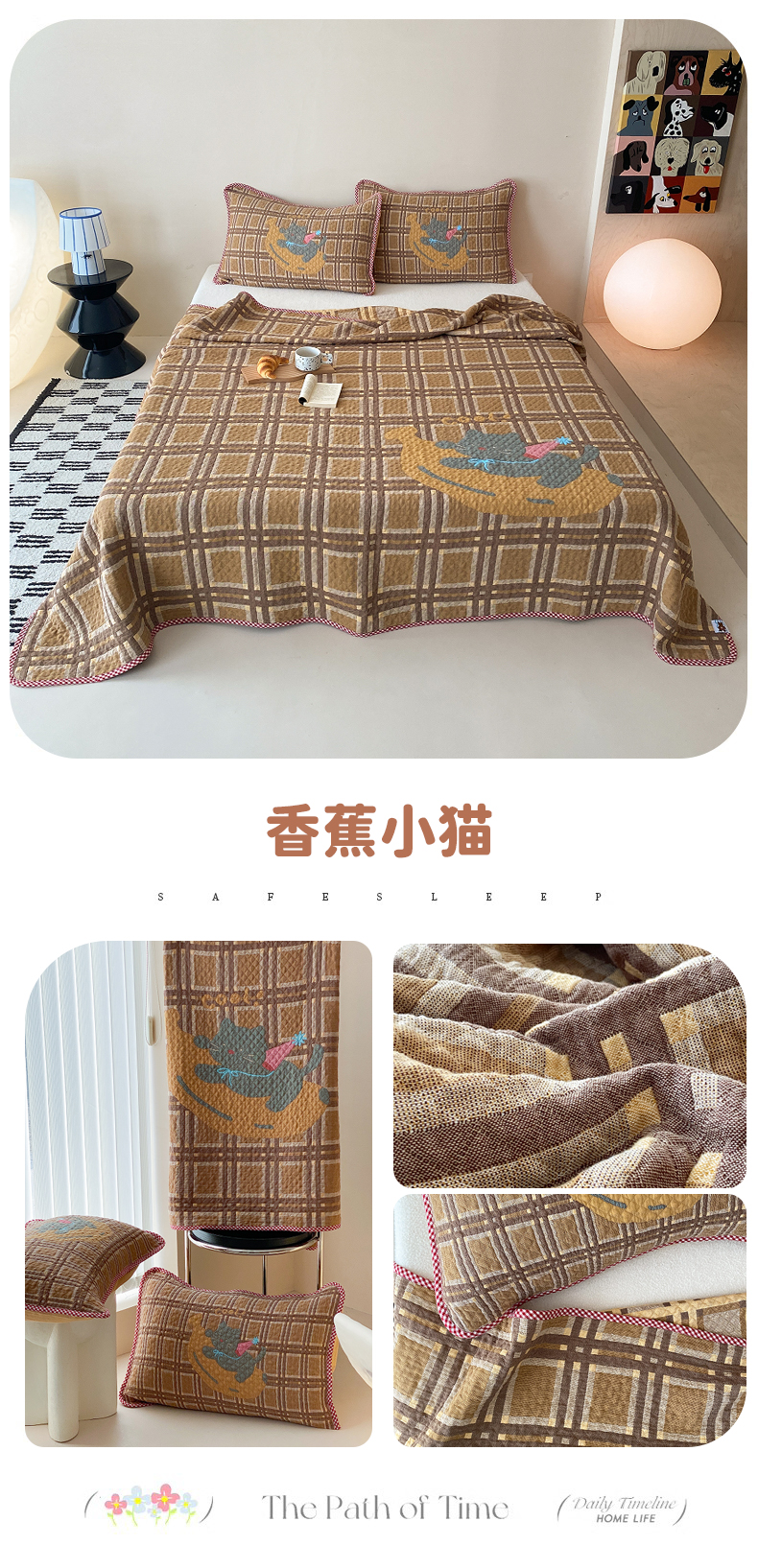 (总)麻依 2026新款安心棉床盖三件全棉四层纱布床单系列,点点星-彩色,点点星-粉色,点点星-绿色,点点星-浅咖,方格-彩色,方格-咖色,卡通小猫-淡紫,卡通小猫-亮黄,卡通小猫-浅粉,卡通小猫-水蓝,小花-粉色,小花-咖色,组合图仅展示