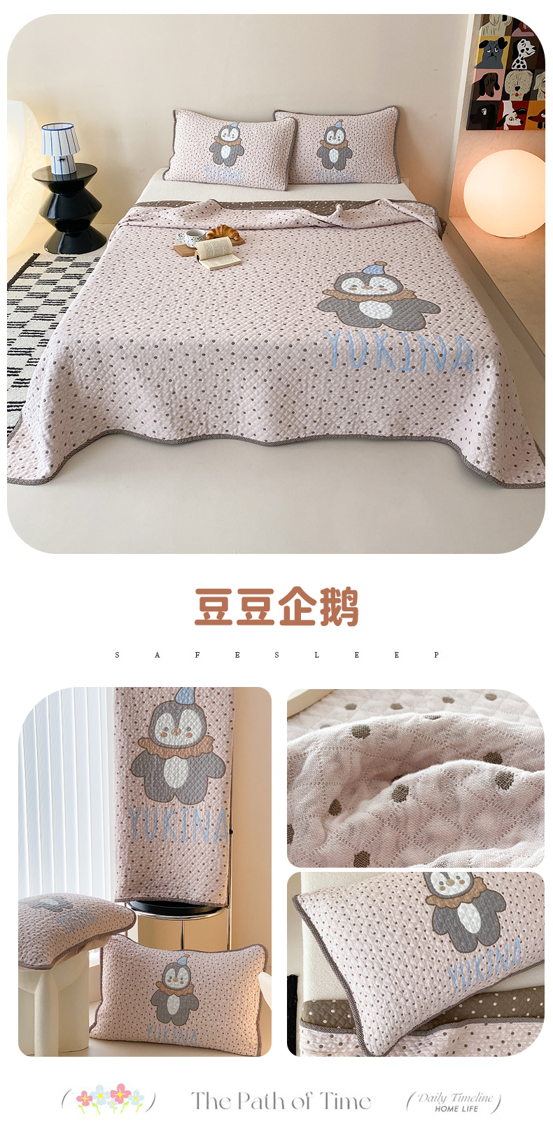 商品名称:麻依 2026新款软萌纱布床盖三件套系列 胖胖企鹅