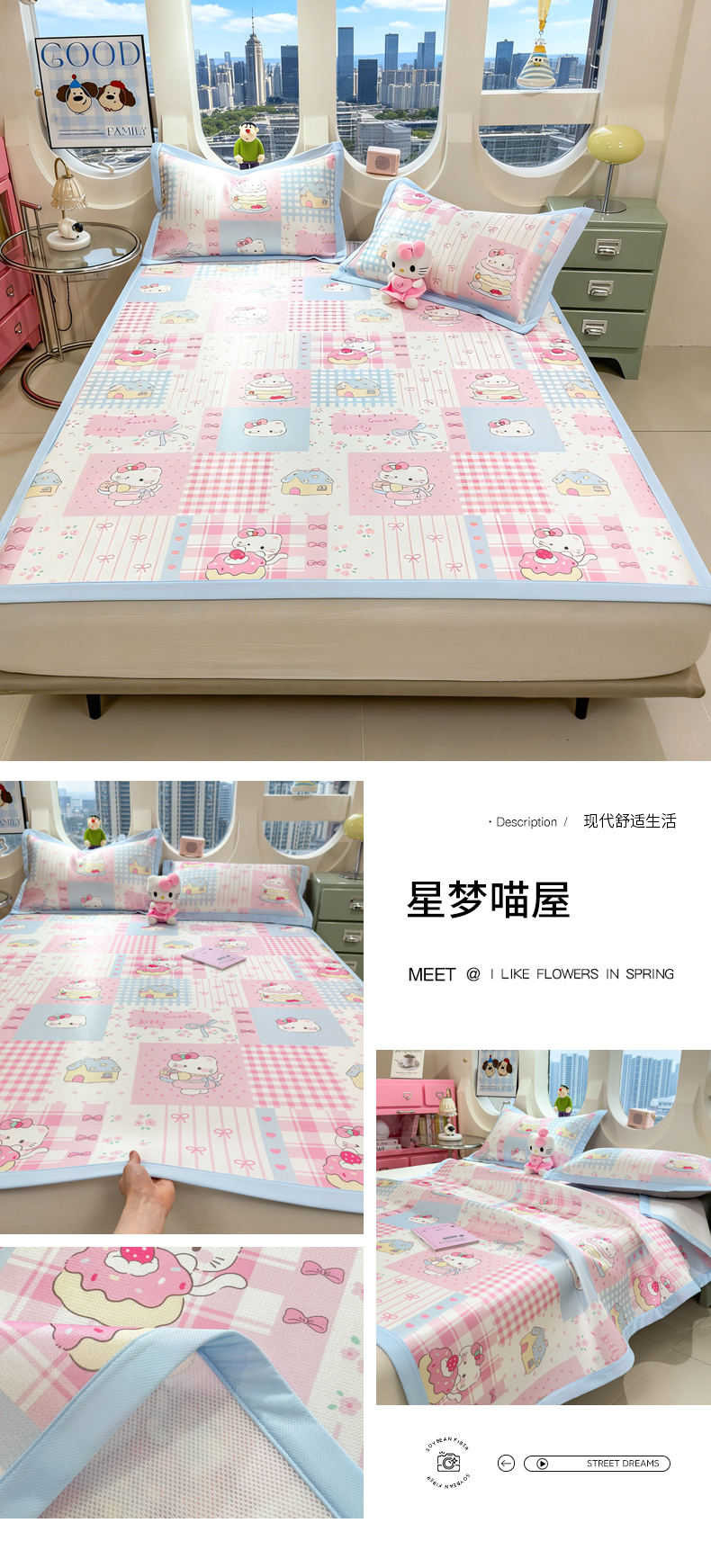 (总)丝羽坊 2026新款小版印花碳光冰丝凉席床笠款,星梦喵屋,蓝花熊语,小甜心,云漫花絮,兔宝,星光灿烂,彩色心愿,春日猫记,蛋糕猫,黑蝴蝶,花甜猫,绿叶,猫叙花间,萌宠甜心,小犬时光,幸运企鹅,叶语