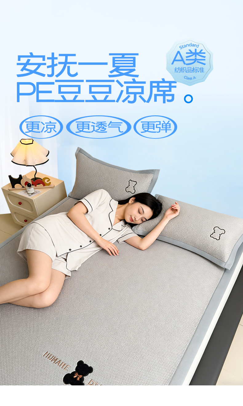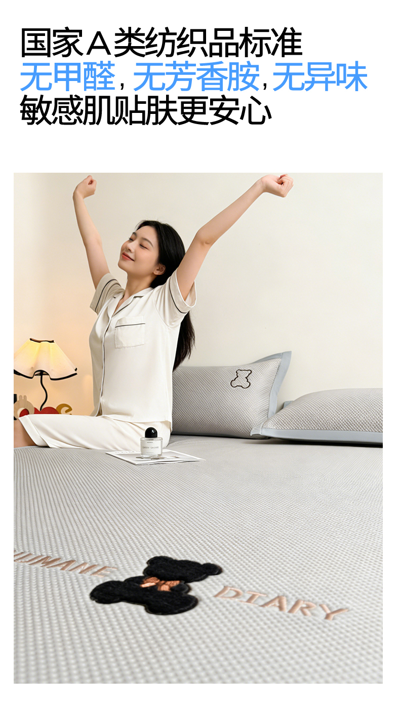 当前位置: 91家纺网 > 商品网购 > 床上用品 > 凉席 > 其他凉席 > 雯豆家纺 2026新款夏季PE凉感豆豆席A类纯色绣花平铺凉席三件套-墨仔熊 墨仔熊-粉
