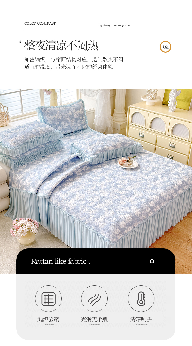 (总)绒棉世家 2026新款高克重PE聚乙中分子提花刺绣法式花边凉感软席