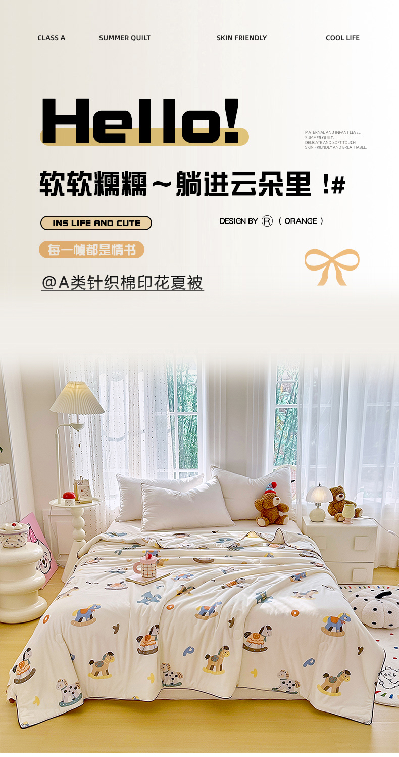 • 91家纺网 家纺一手货源 找家纺 萌飞  2026年新款A类针织棉嘟嘟被夏被春秋被空调被儿童学生被子被芯 马鲨拉帝