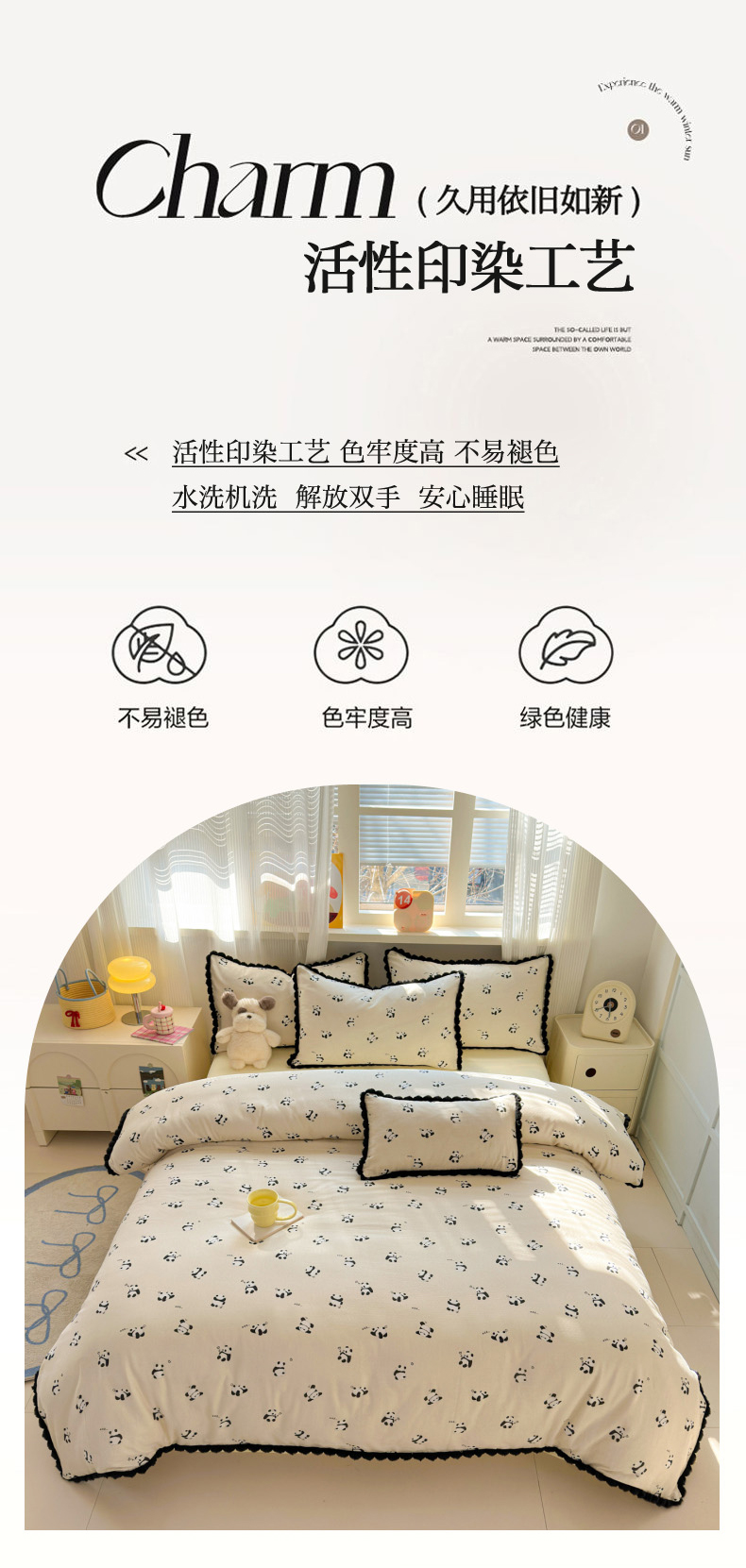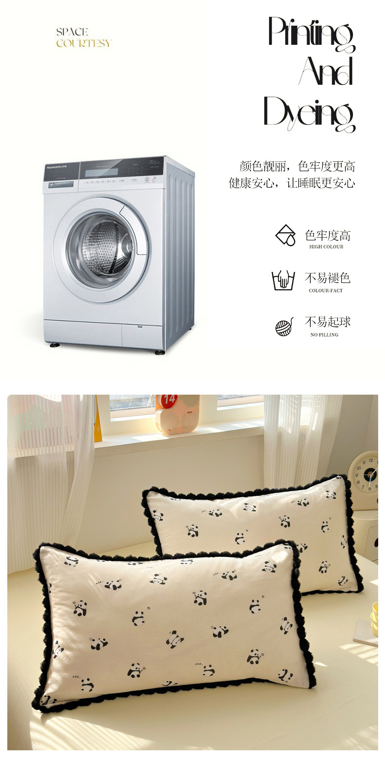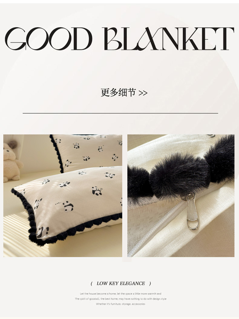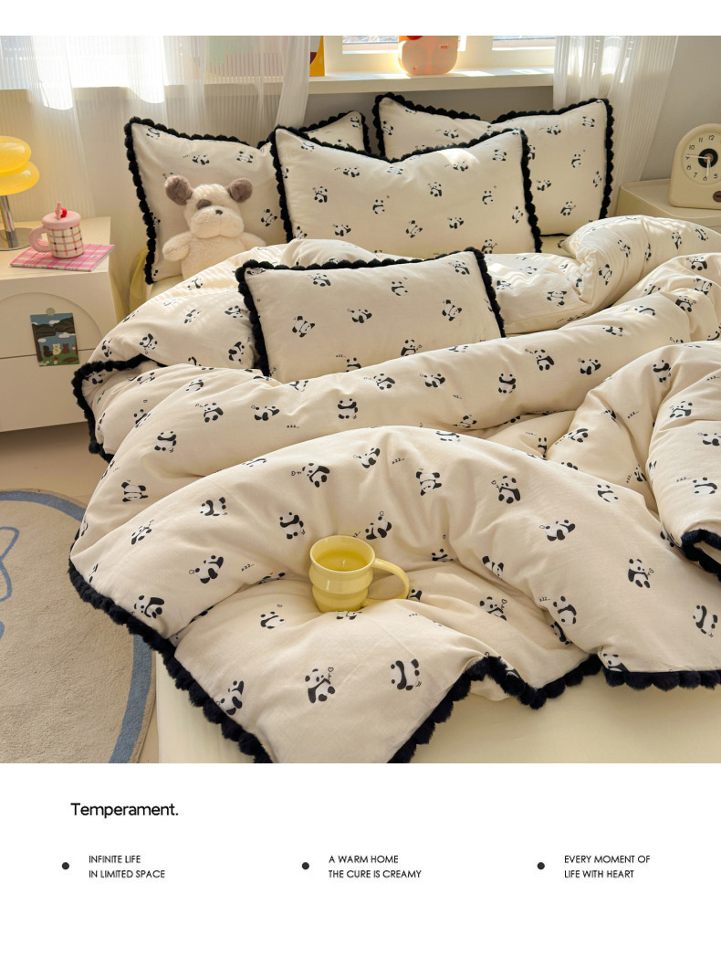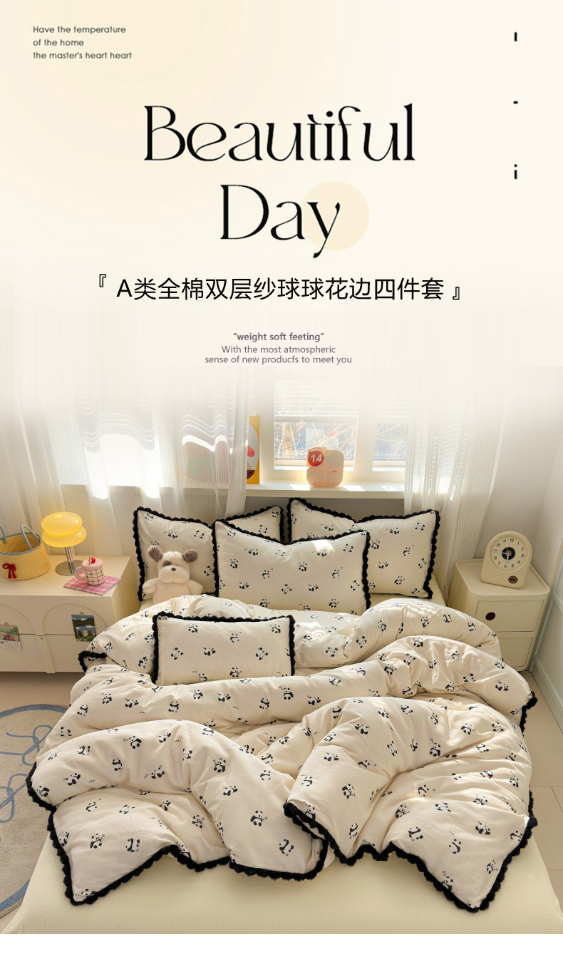 当前位置: 91家纺网 > 商品网购 > 床品套件 > 四件套 > 全棉普通四件套 > 丽涵家纺 2026新款全棉双层纱全棉纯棉大雁纹毛球花边四件套 熊猫笨笨
