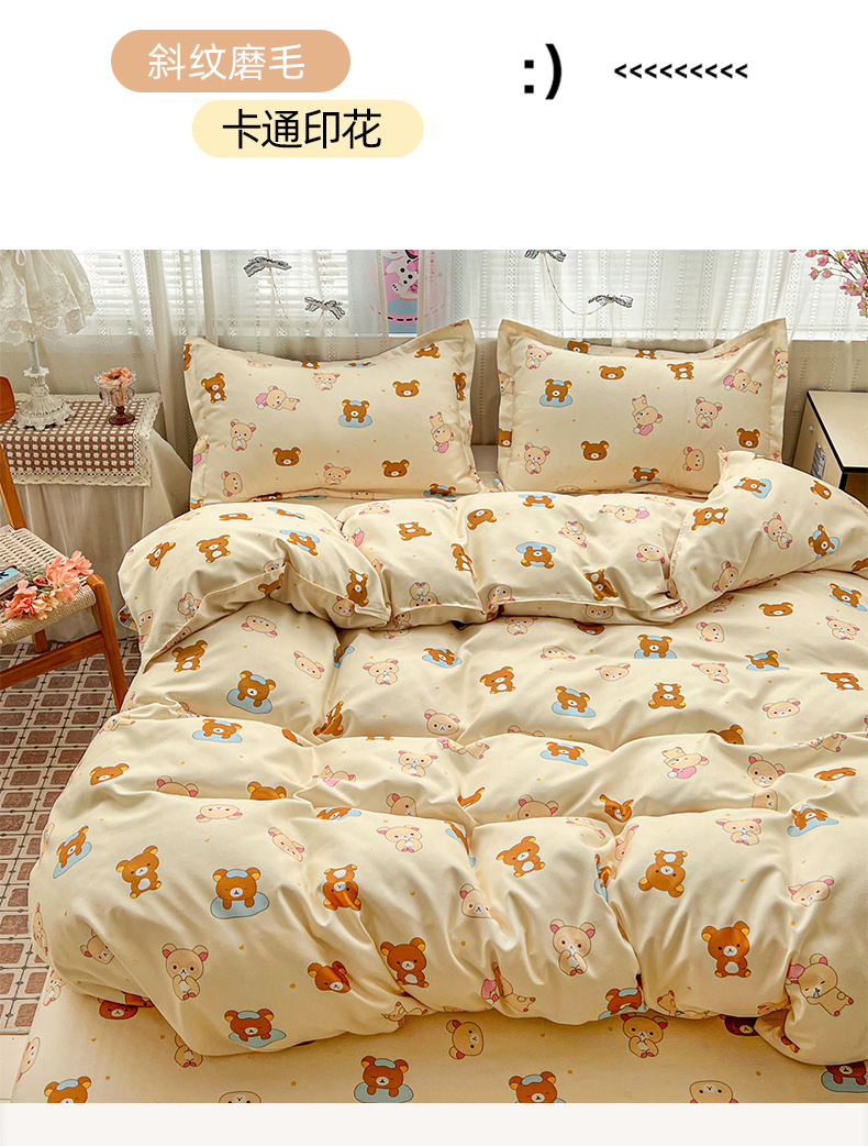当前位置: 91家纺网 > 商品网购 > 床品套件 > 四件套 > 磨毛活性四件套 > KT猫直营店 2026新款卡通斜纹磨毛大版四件套 松弛小熊