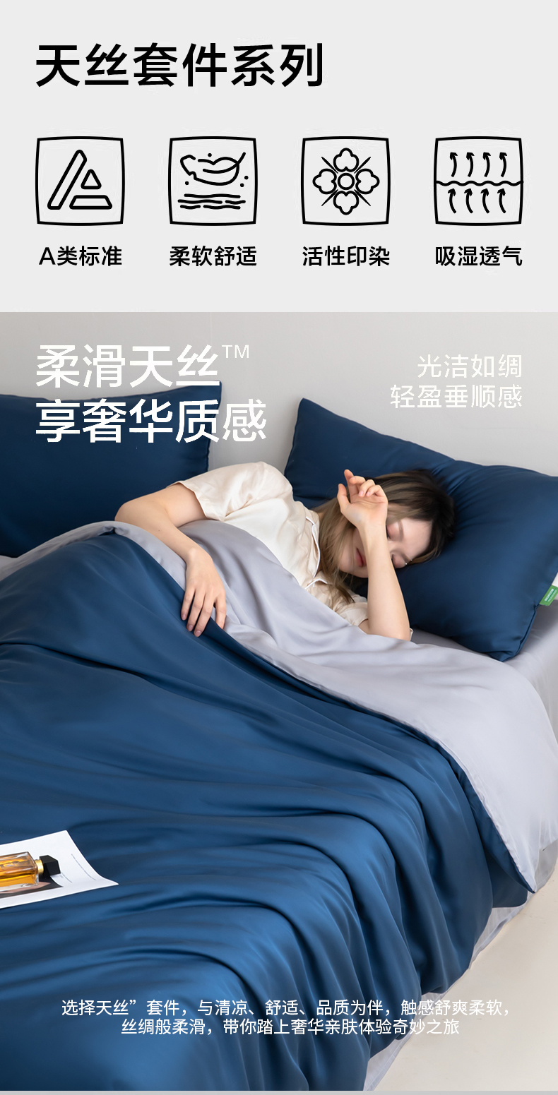 当前位置: 91家纺网 > 商品网购 > 床品套件 > 四件套 > 其它四件套 > 眠博士 2026新款60S天丝莱赛尔纯色四件套 60S天丝套件-米亚蓝+灰