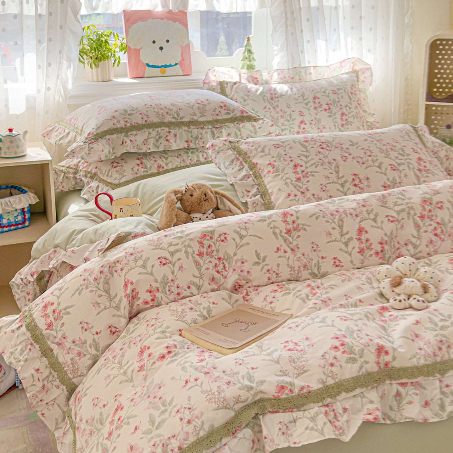 (总)眠屿 2022新款全棉小碎花法式花边四件套,春婵,芳华,韩式小花,花间兔,花开半夏,花叶,蓝花兔,罗曼花语,绿萌,梦妆花园,硕果,春华秋实,菲菲兔,花丛间,捧花熊,硕果,田园物语,甜趣草莓,樱桃小花,金色花语,四季芳香