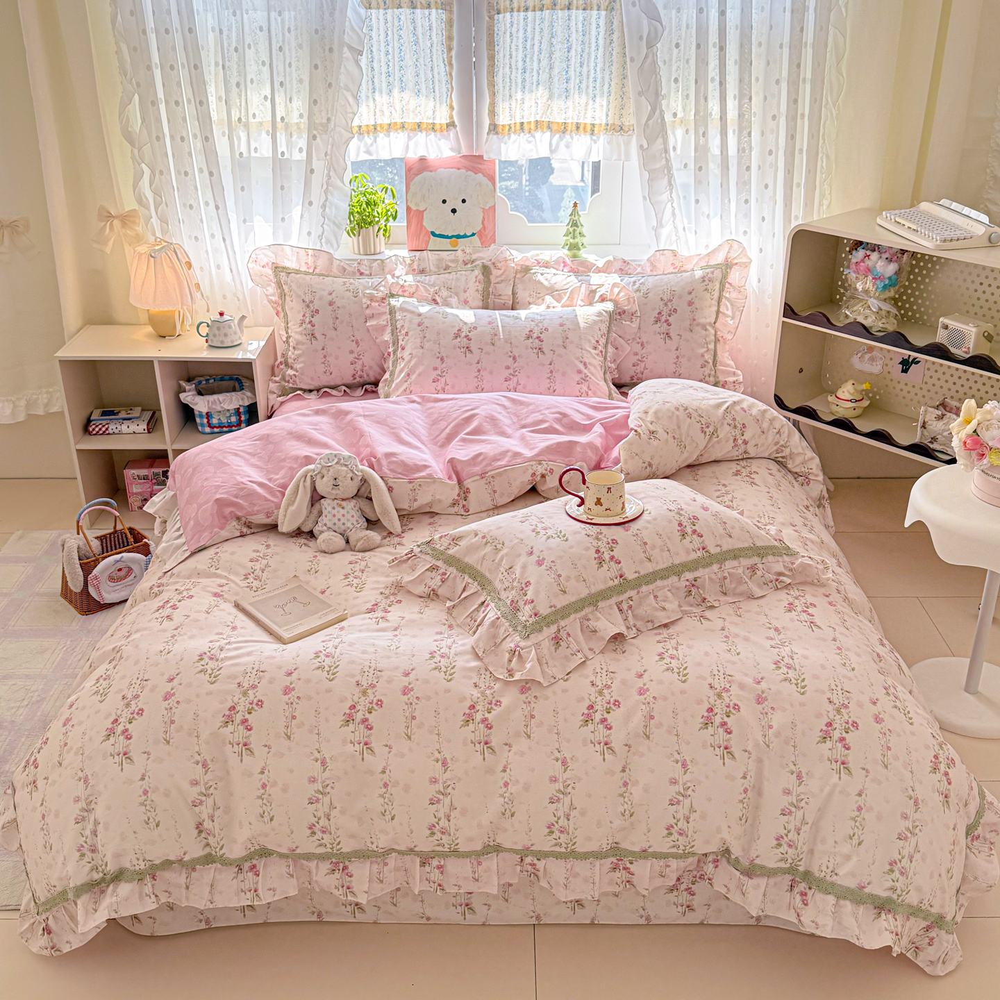 眠屿家纺 2026新款40支全棉纯棉小清新法式花边款四件套 温婉花语