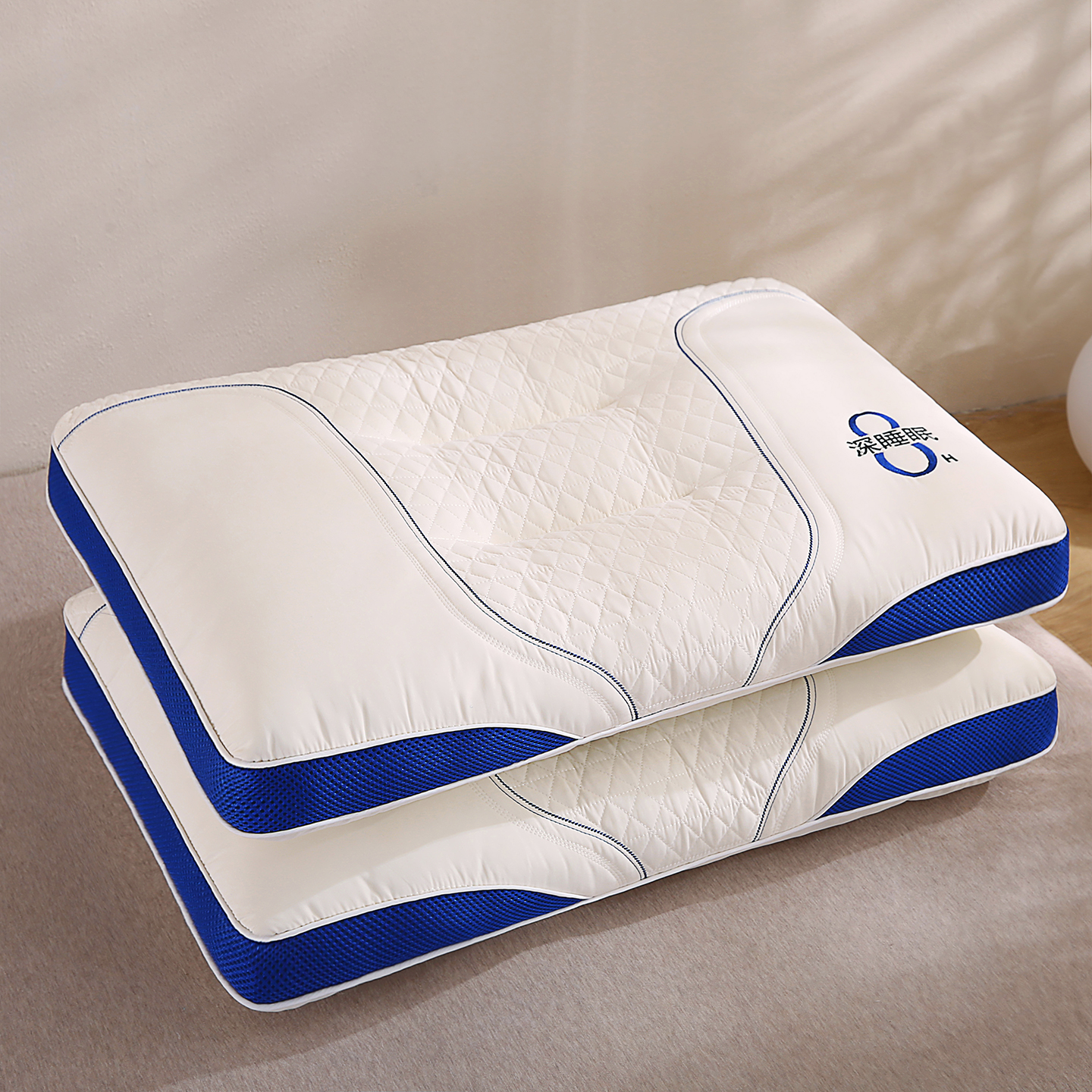 商品名称:橘夏家纺 2026新款8小时深睡眠刺绣款枕芯 立体分区透气家用助眠枕头芯 8小时深睡眠刺绣款-白色