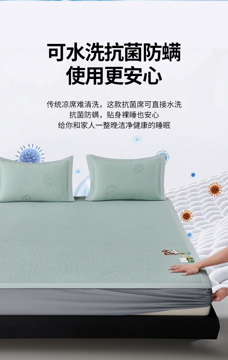 (总)2023新款超精密冰丝席-小斜纹系列-床笠款藤席凉席竹席,粉色,蓝色,绿色,银灰