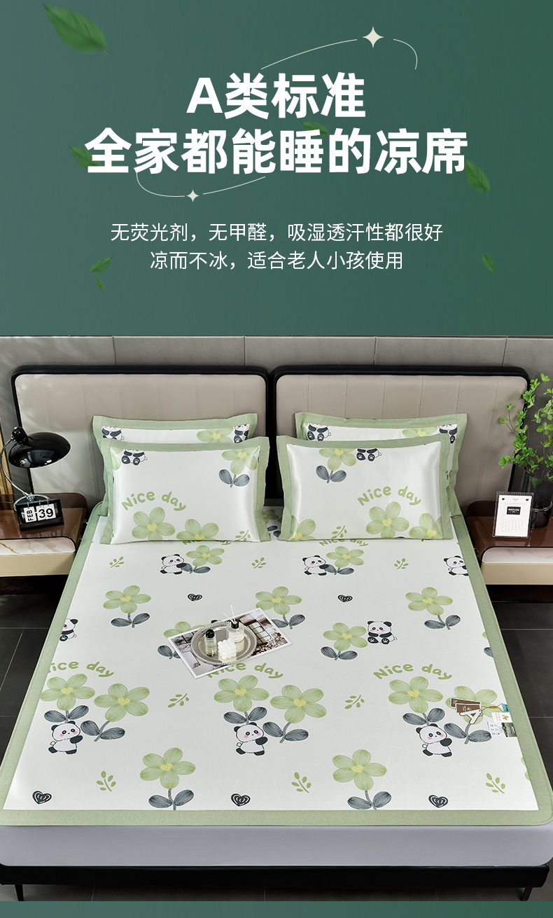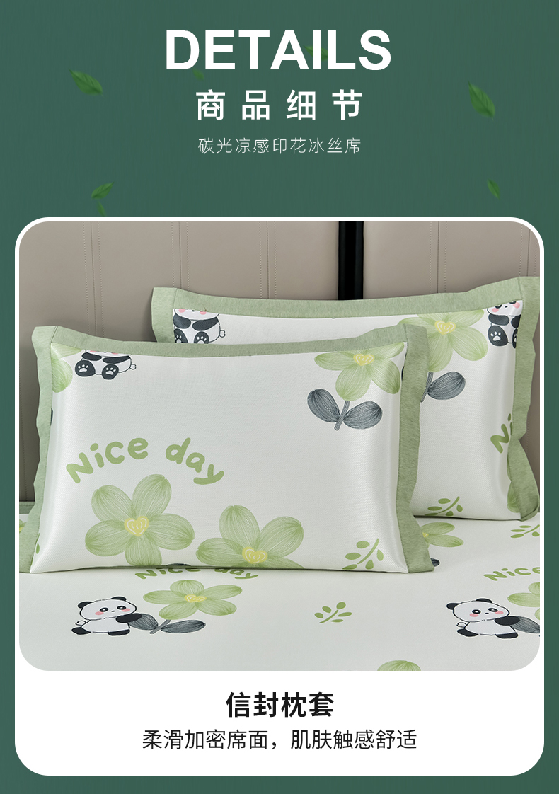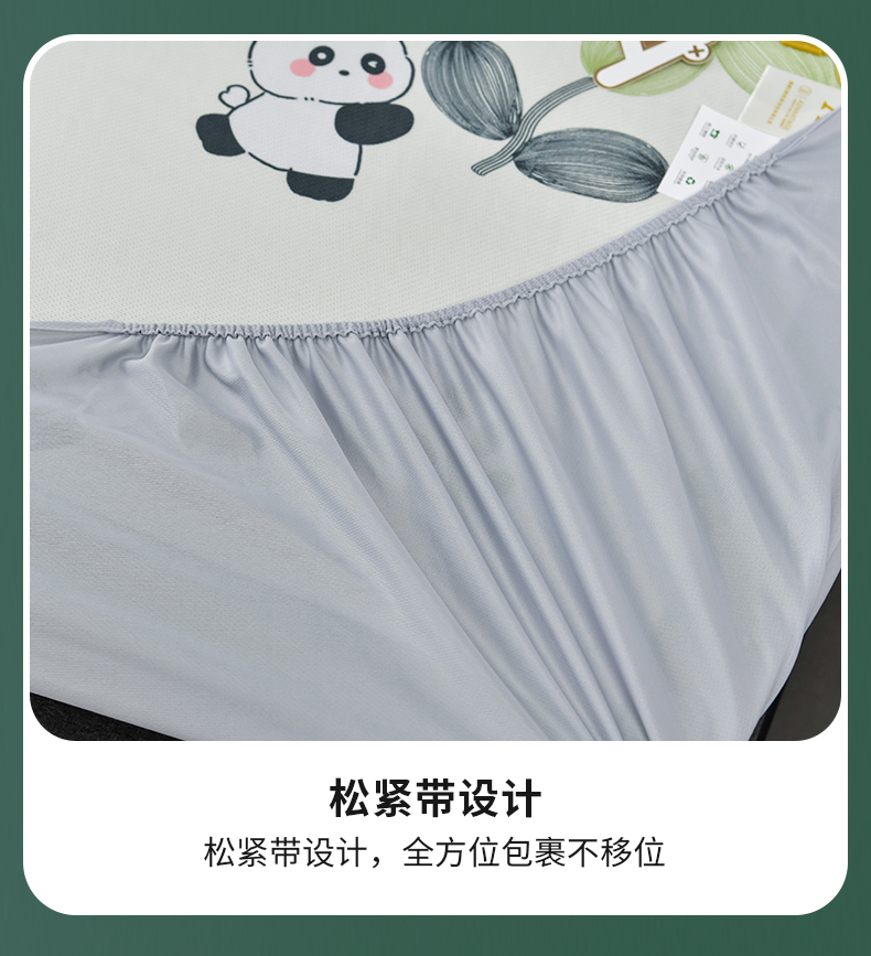 商品名称:小牛席业 2026新款加厚款碳光凉感印花冰丝席凉席席子(床笠款) 熊猫胖哒