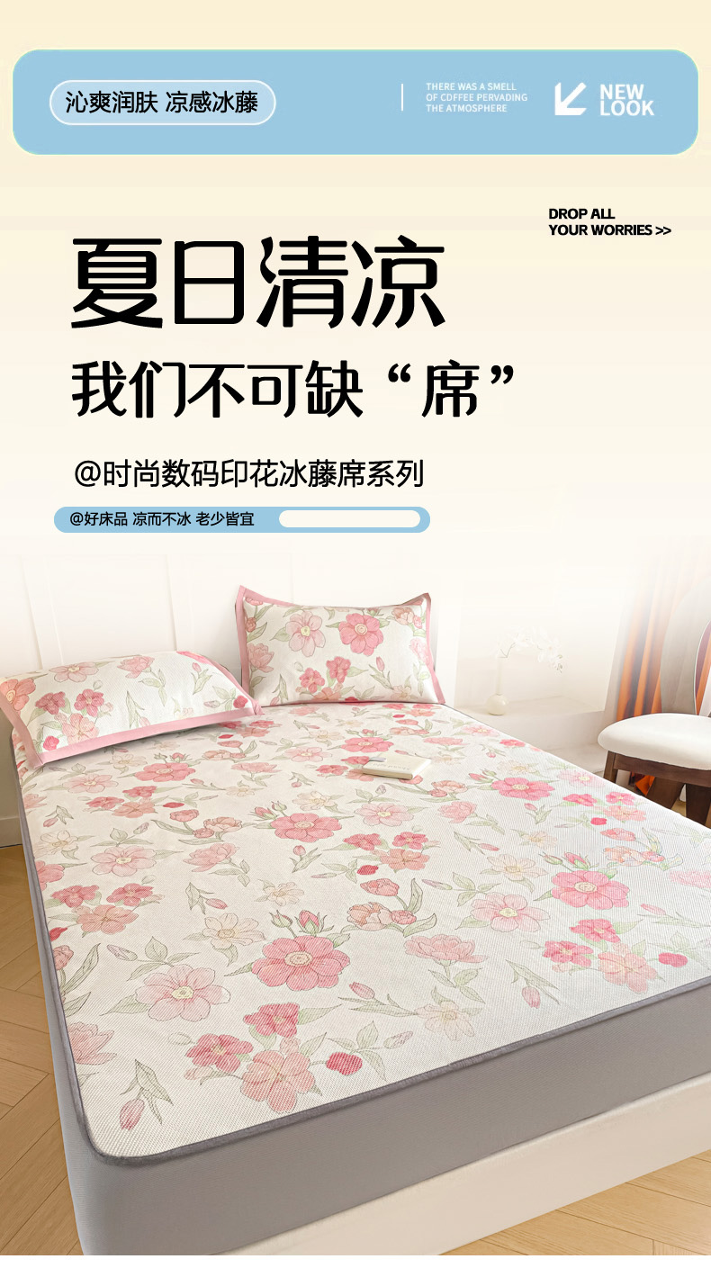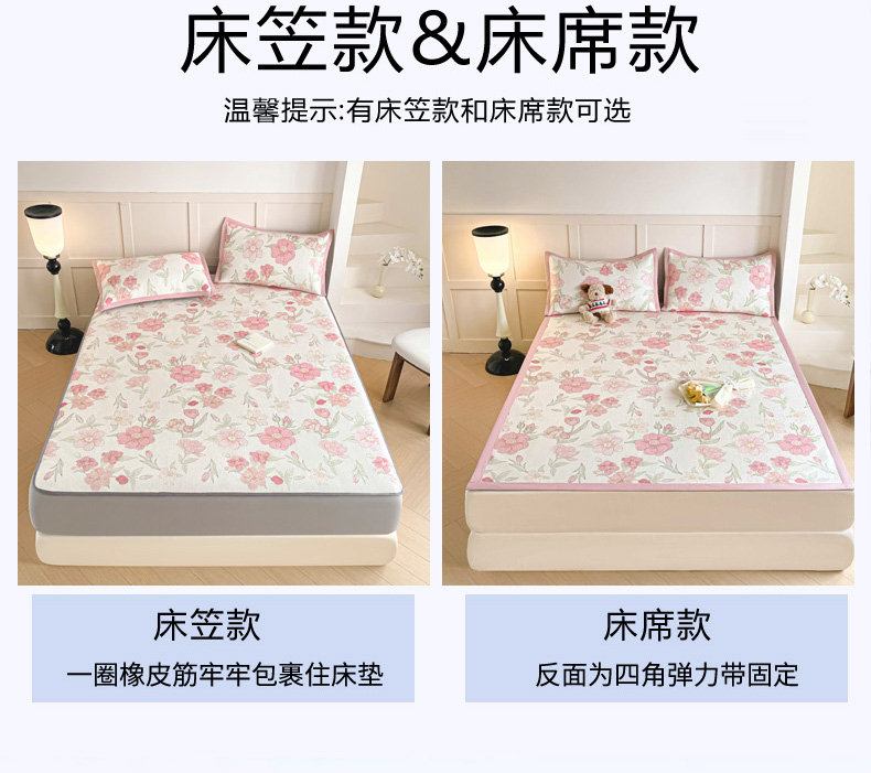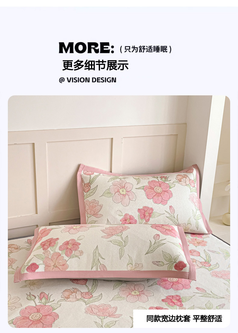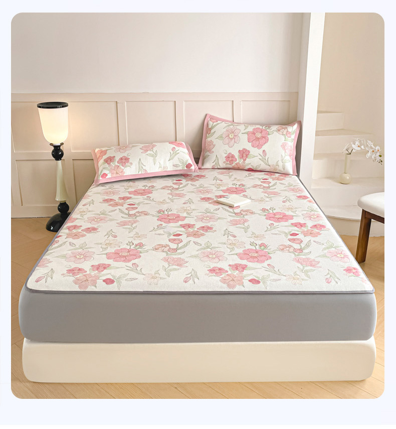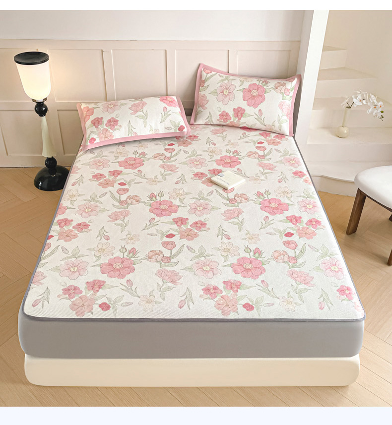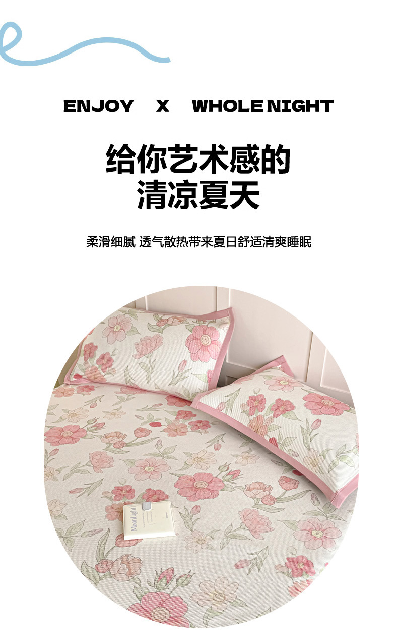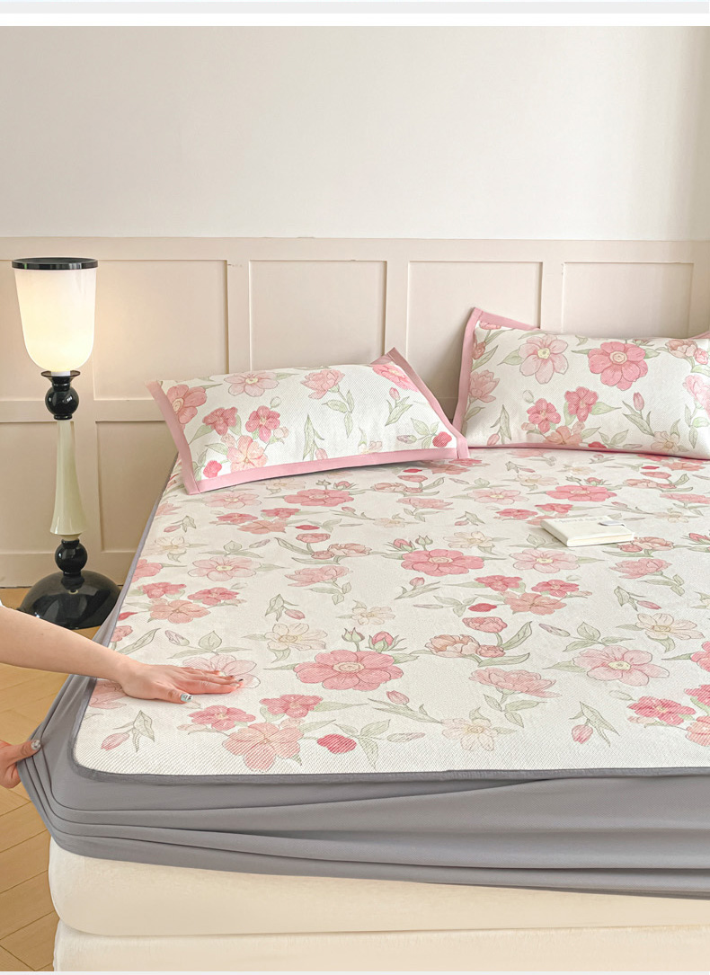 商品名称:柒月家居 2026新款小清新印花冰藤凉席席子-床笠款 粉色花海