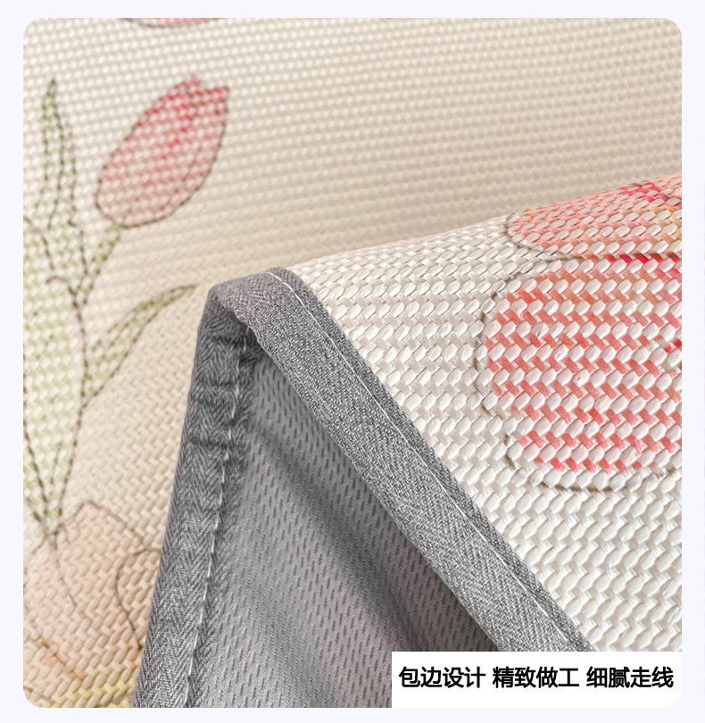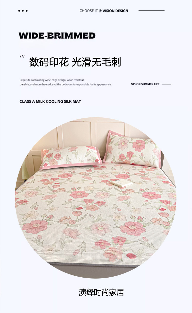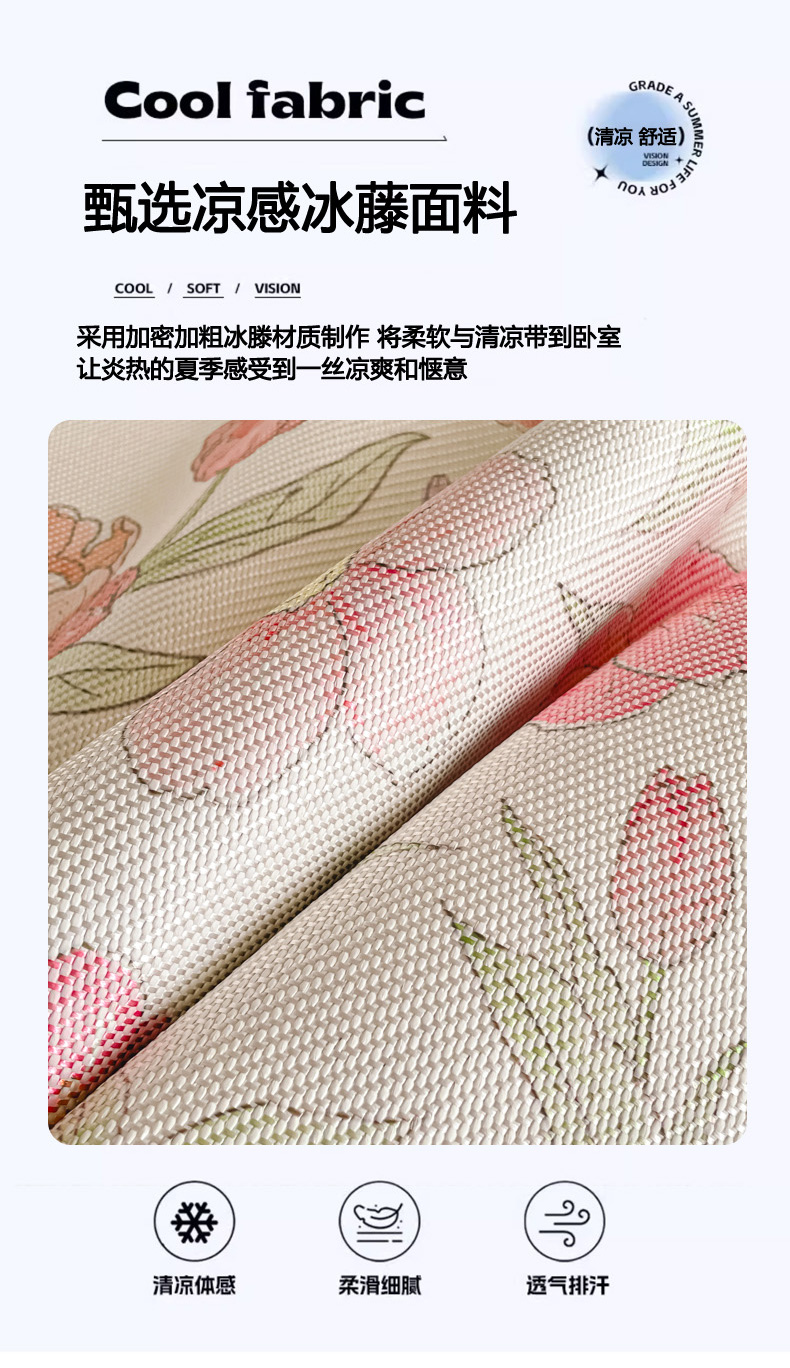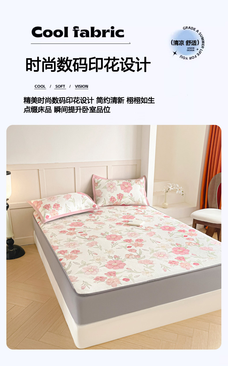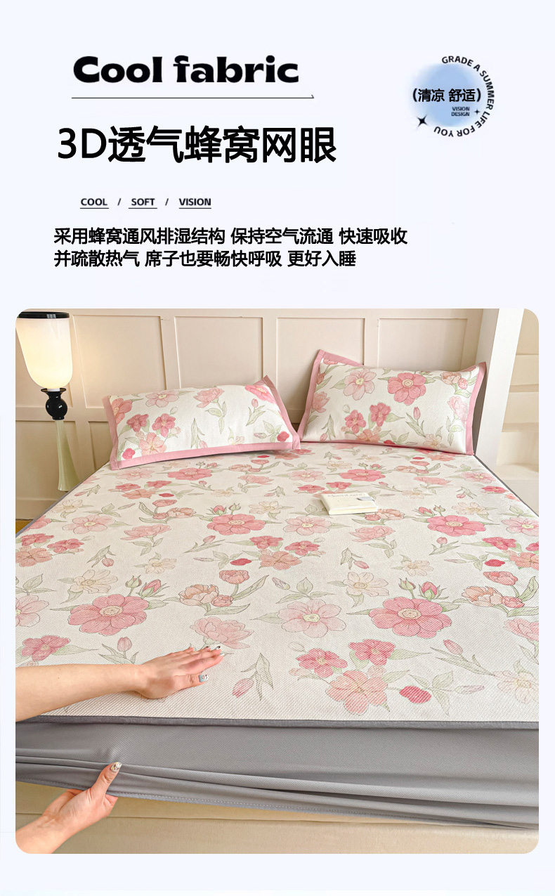 商品名称:柒月家居 2026新款小清新印花冰藤凉席席子-床笠款 粉色花海