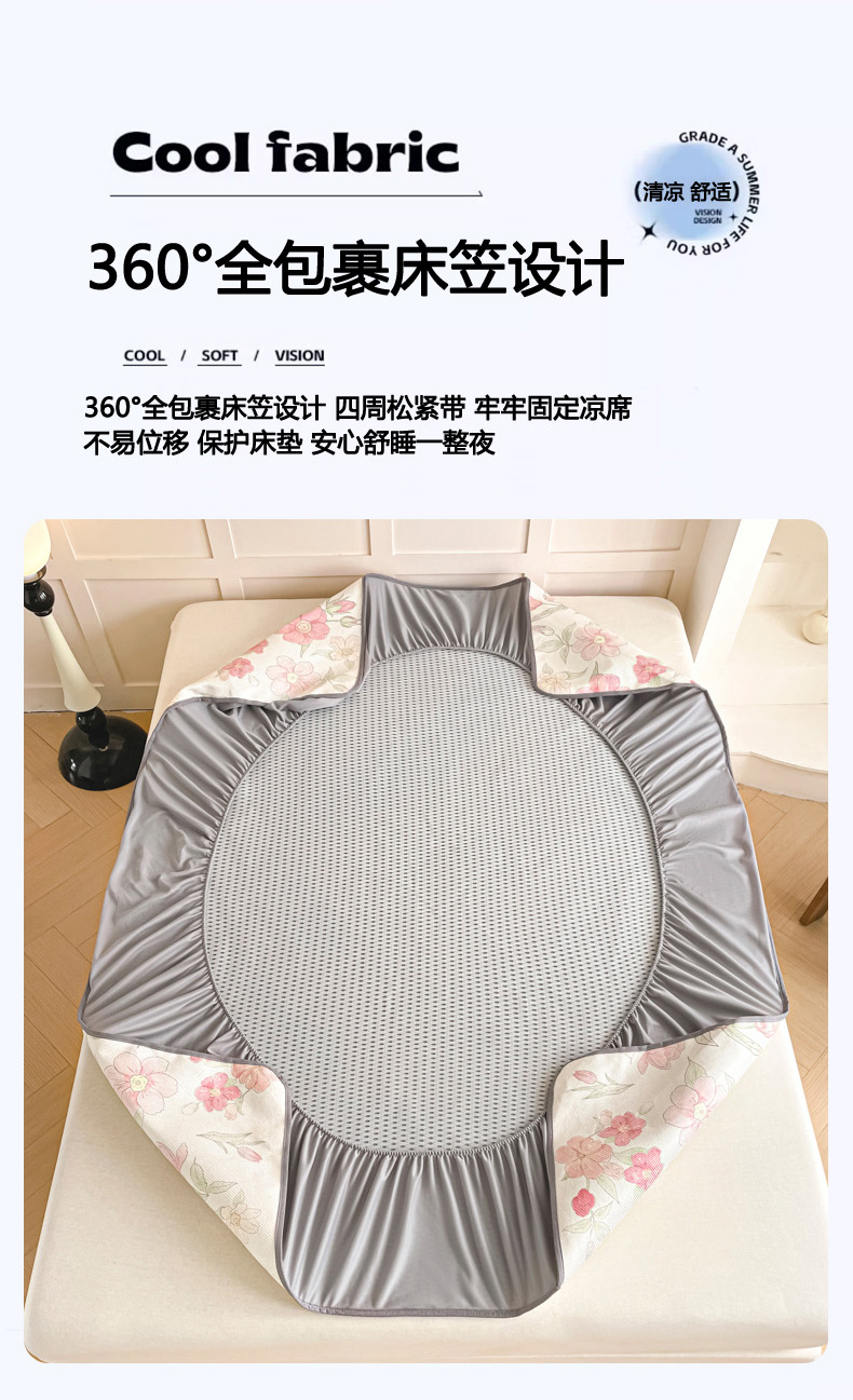(总)柒月家居 2026新款小清新印花冰藤凉席席子-床笠款,爱心布布,爱心蝴蝶结,粉色花海,格格熊,花间-粉,花蔓,绿茵,猫猫日记,夜空