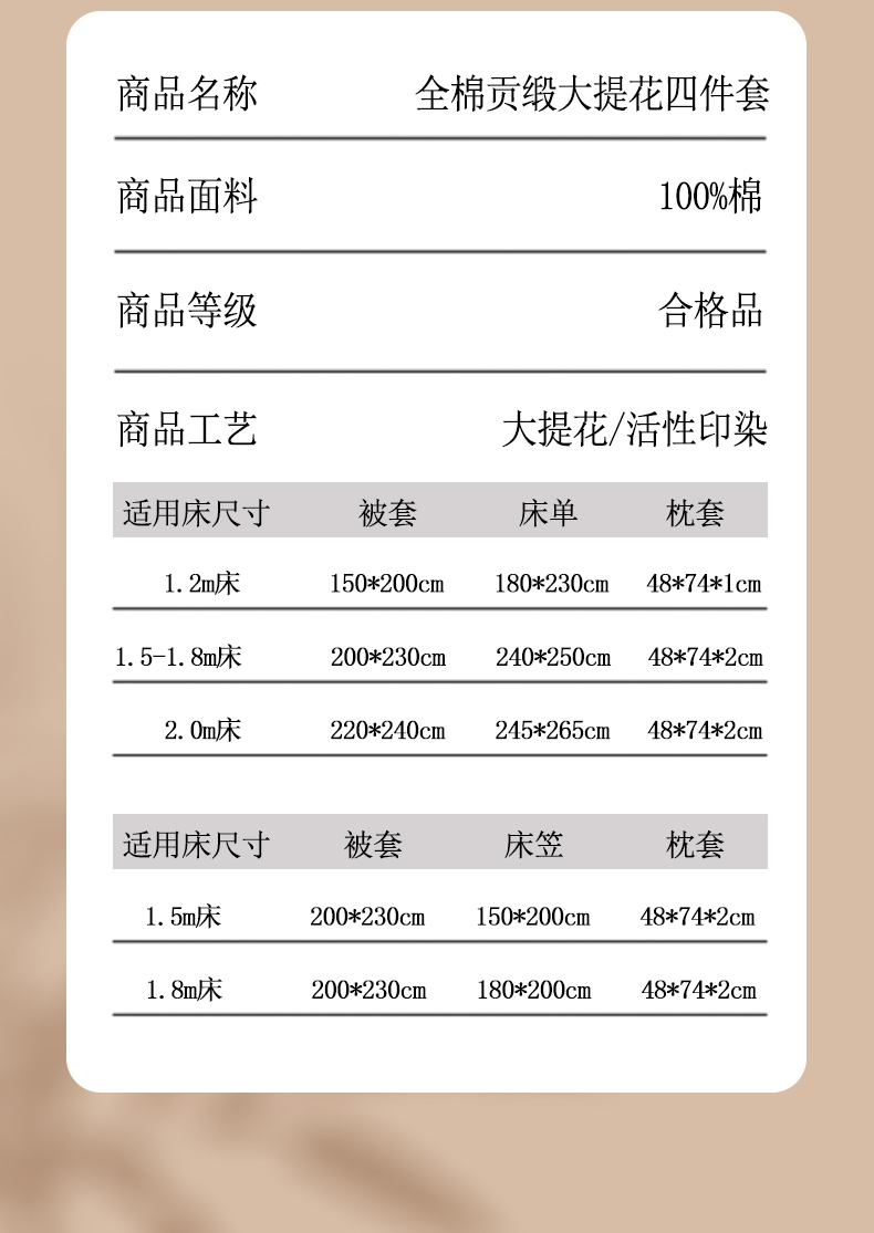 【床单款】1.8四件套-被套200x230 | ¥140.00 |
