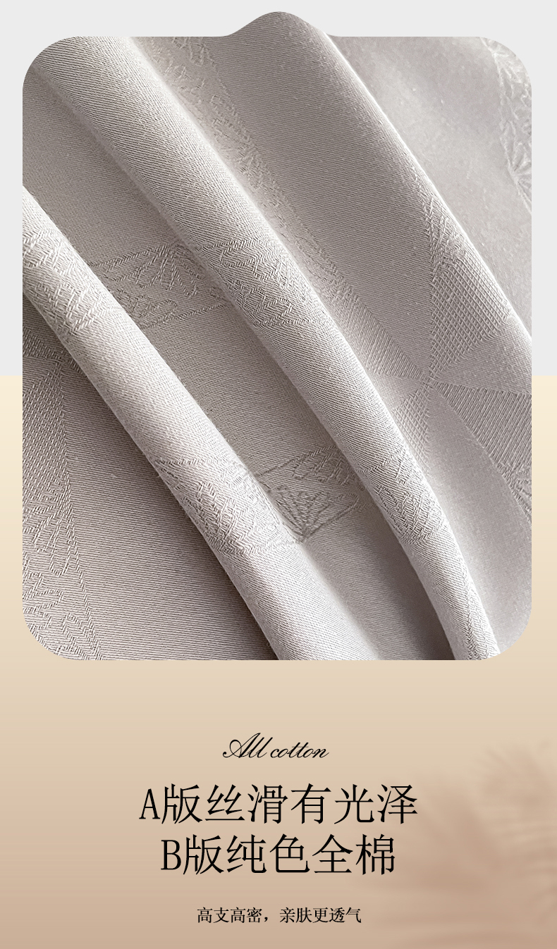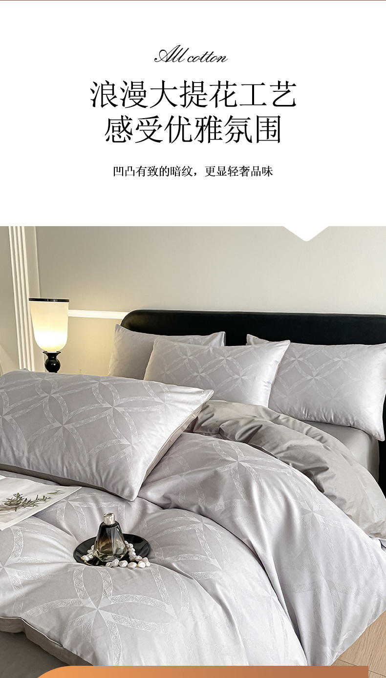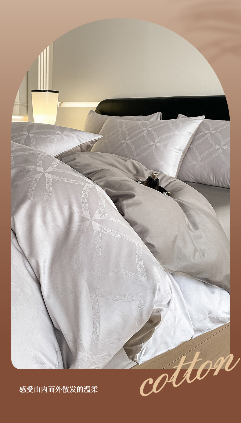 当前位置: 91家纺网 > 商品网购 > 床品套件 > 四件套 > 全棉普通四件套 > 琪格格纺织 2026新款纯棉全棉60s贡缎轻奢大提花四件套 纯棉贡缎 彩云乐园灰