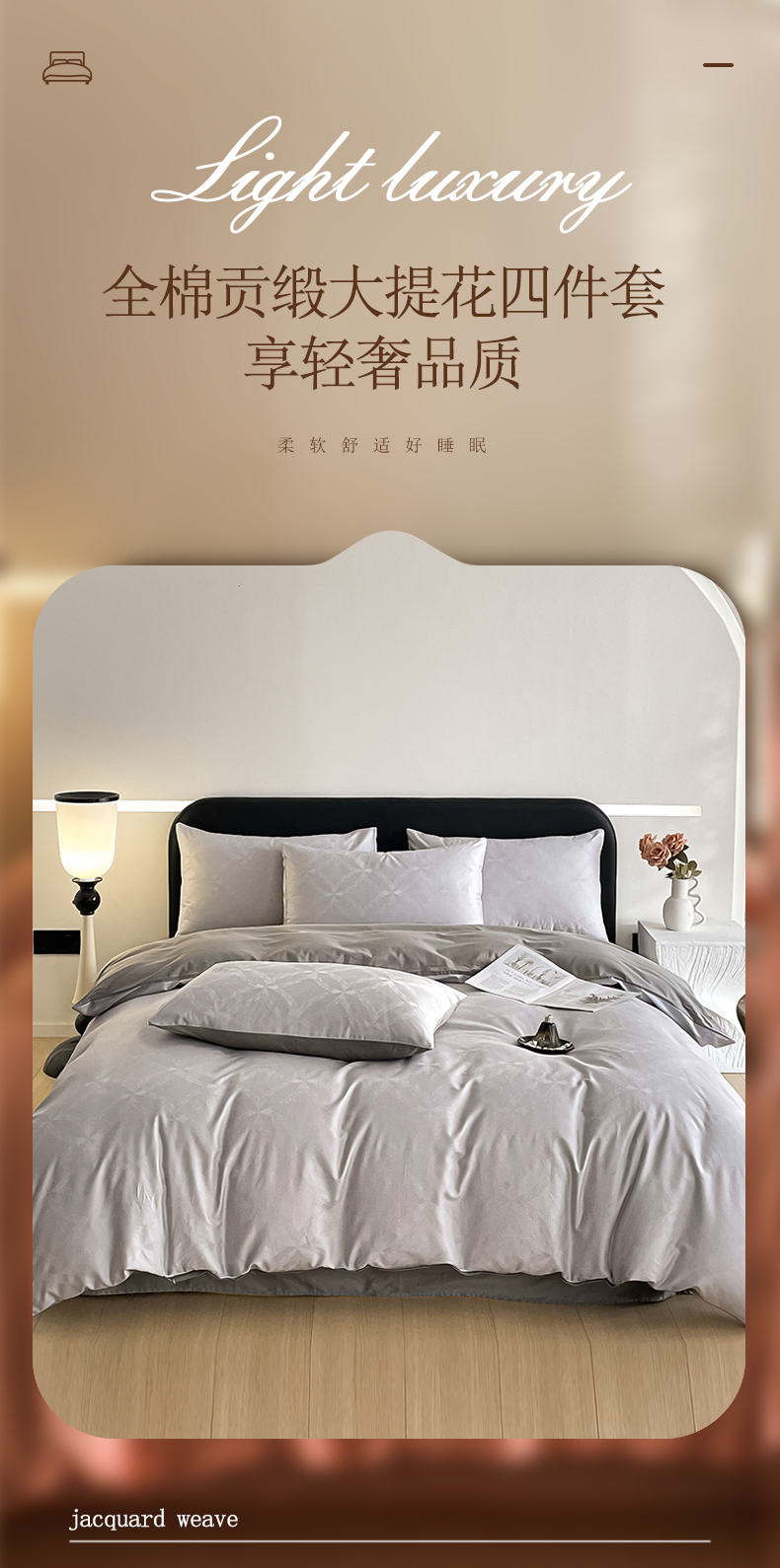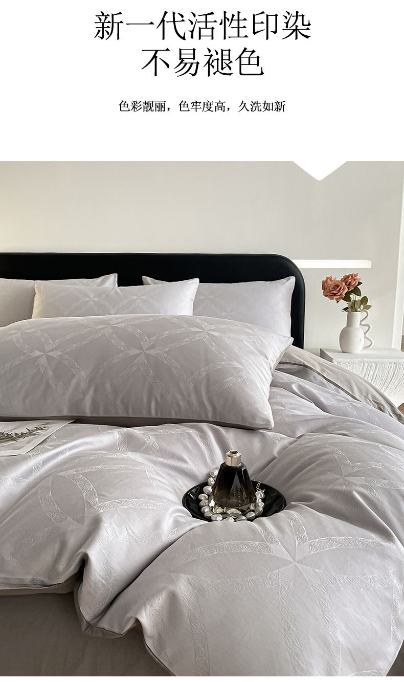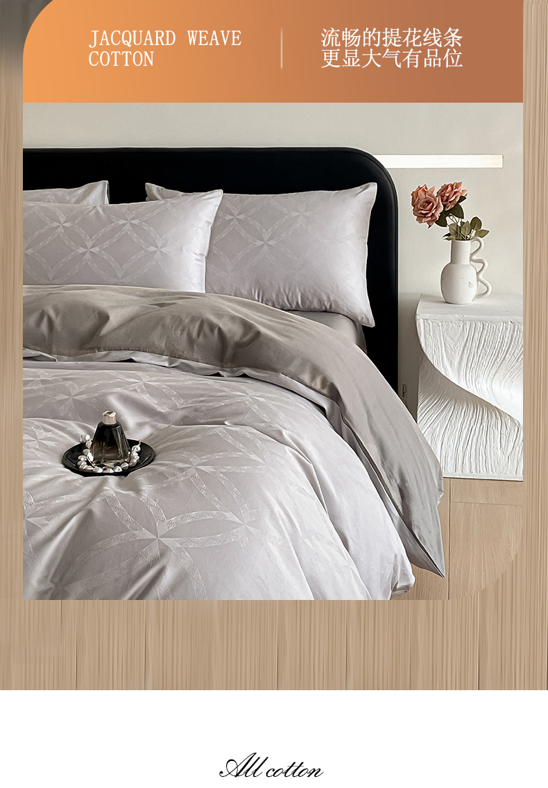当前位置: 91家纺网 > 商品网购 > 床品套件 > 四件套 > 全棉普通四件套 > 琪格格纺织 2026新款纯棉全棉60s贡缎轻奢大提花四件套 纯棉贡缎 彩云乐园灰