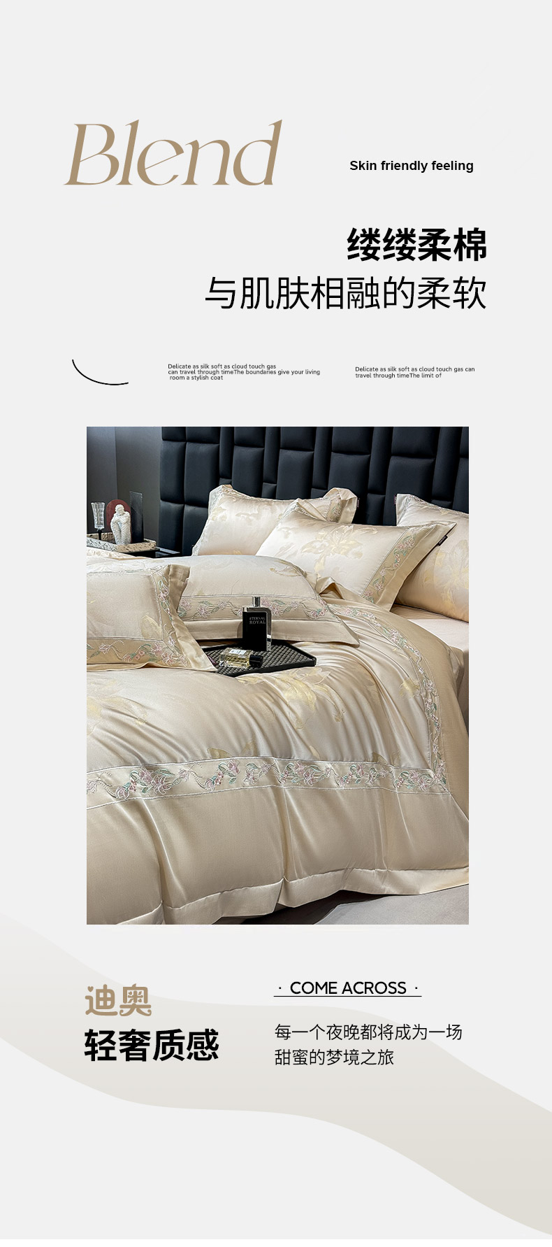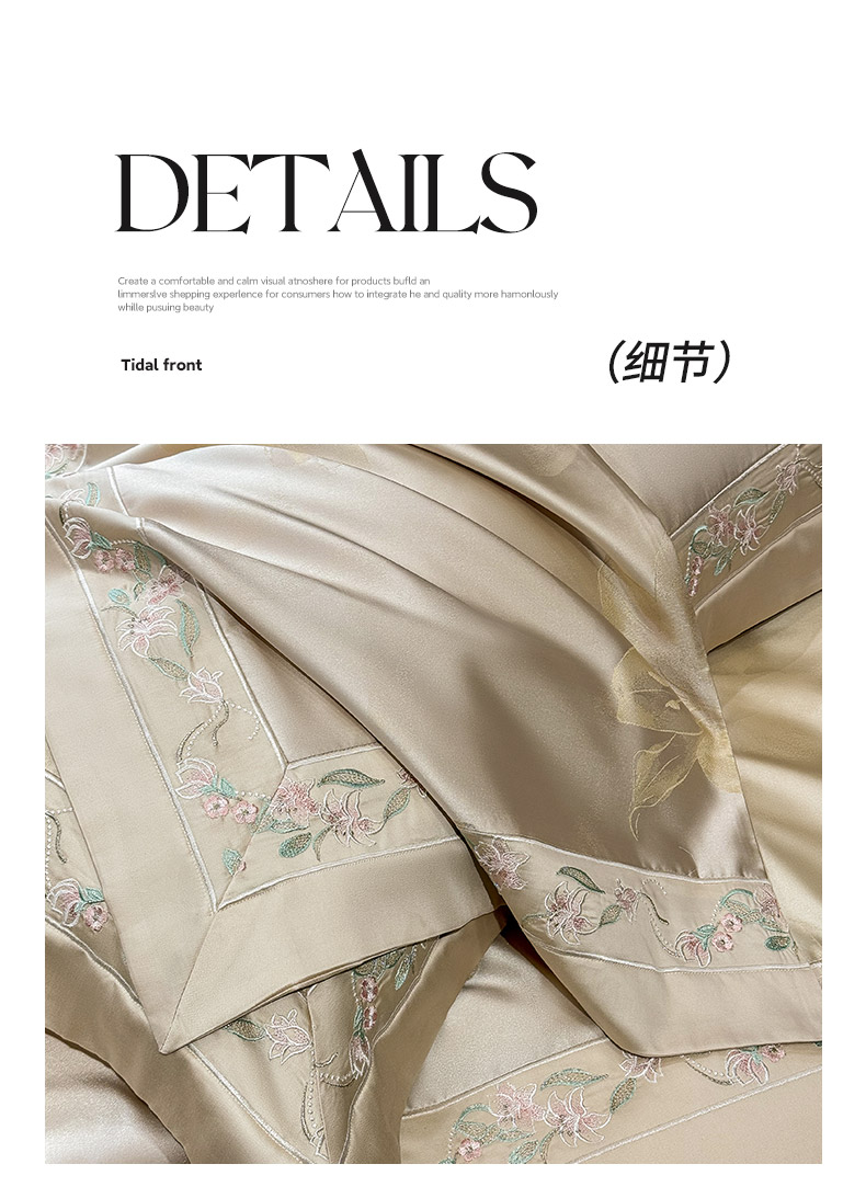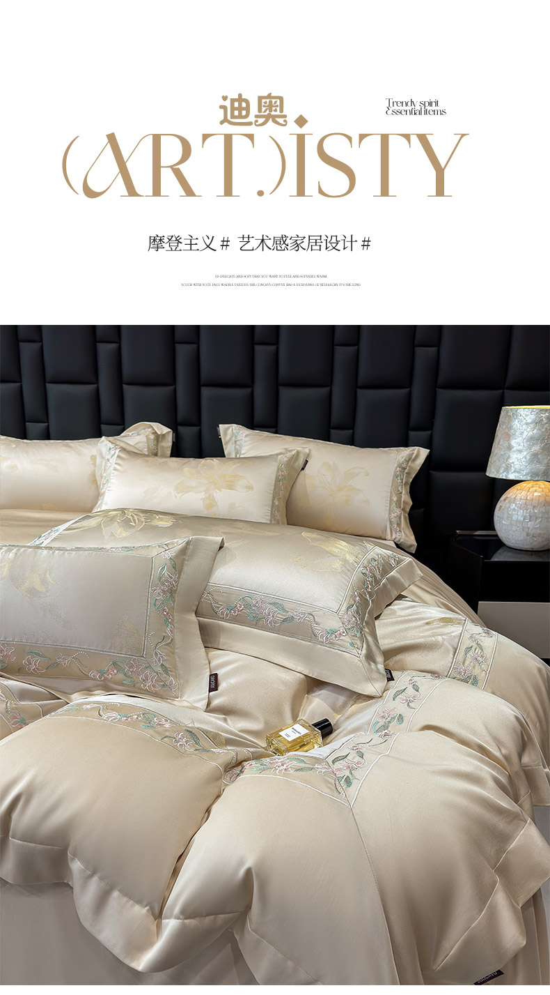 • 91家纺网 家纺一手货源 找家纺 2026新款轻奢风A类厚织提花长绒棉纯棉四件套100全棉高档重工刺绣被套床单床笠 薇澜-太妃金
