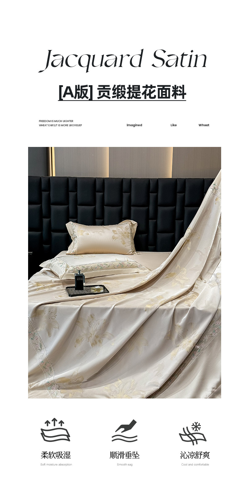 (总)乔利卡沃 2026高端新品A类长绒棉纯棉四件套100全棉贡缎提花被套床单床笠轻奢风索依,索依-绯绿,索依-湘金,索依-芸粉