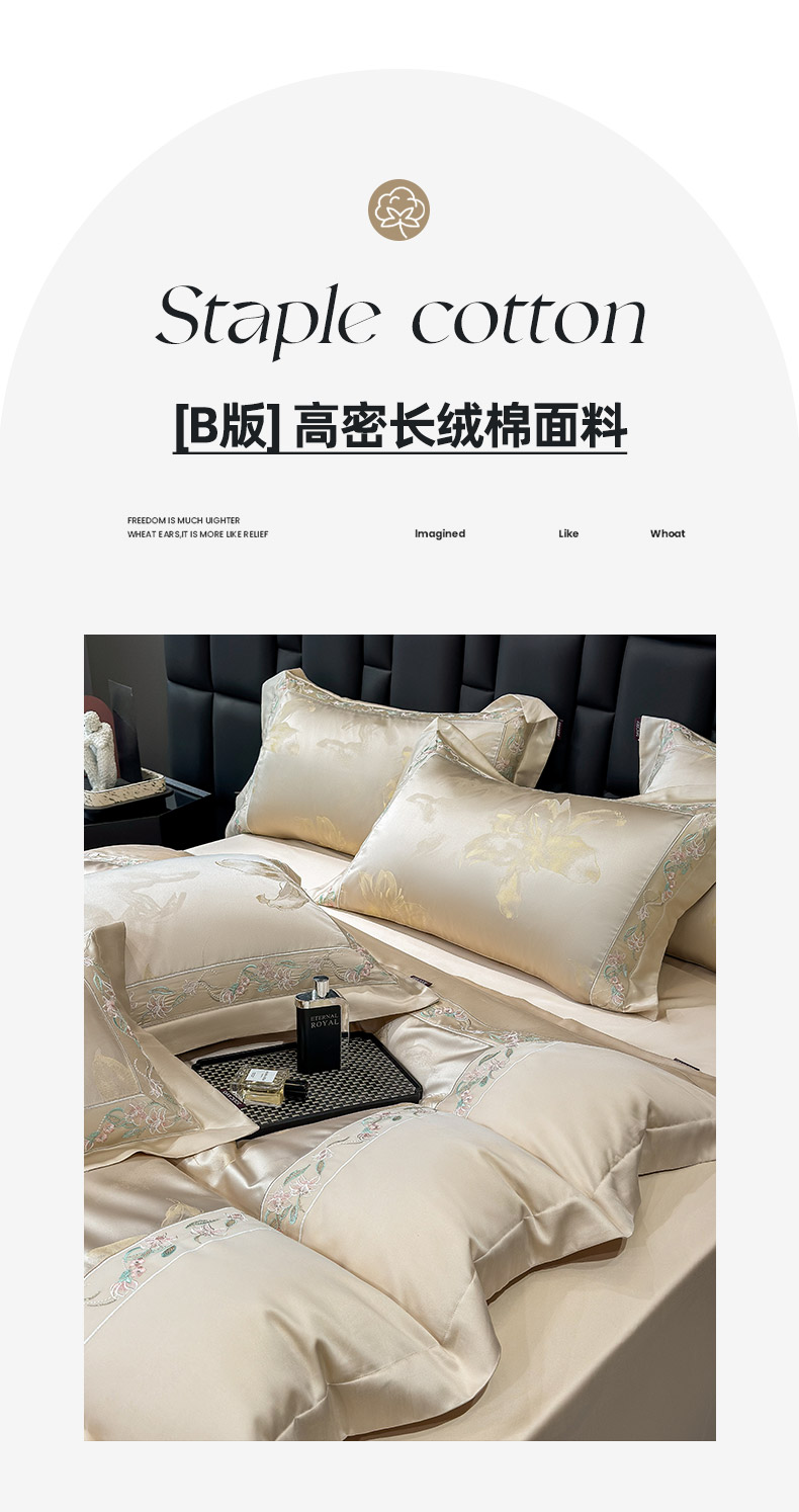 当前位置: 91家纺网 > 商品网购 > 床品套件 > 四件套 > 长绒棉四件套 > 2026新款轻奢风A类厚织提花长绒棉纯棉四件套100全棉高档重工刺绣被套床单床笠 薇澜-太妃金