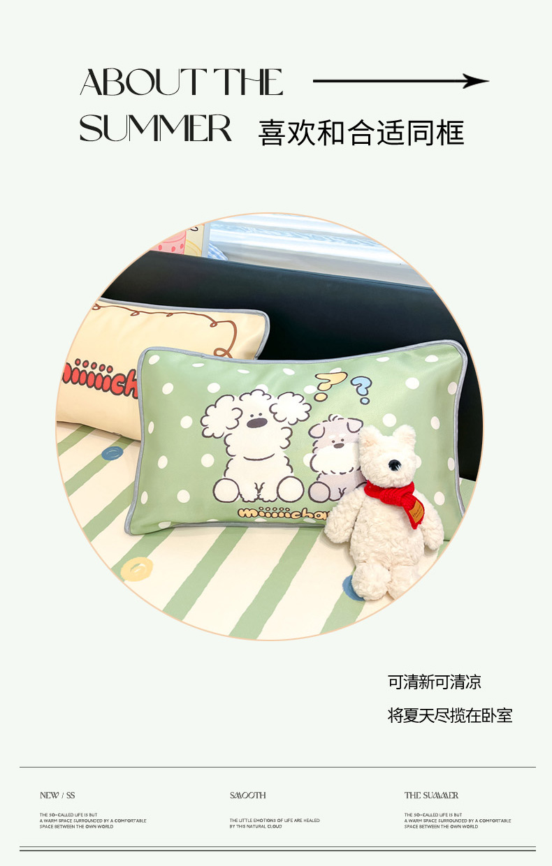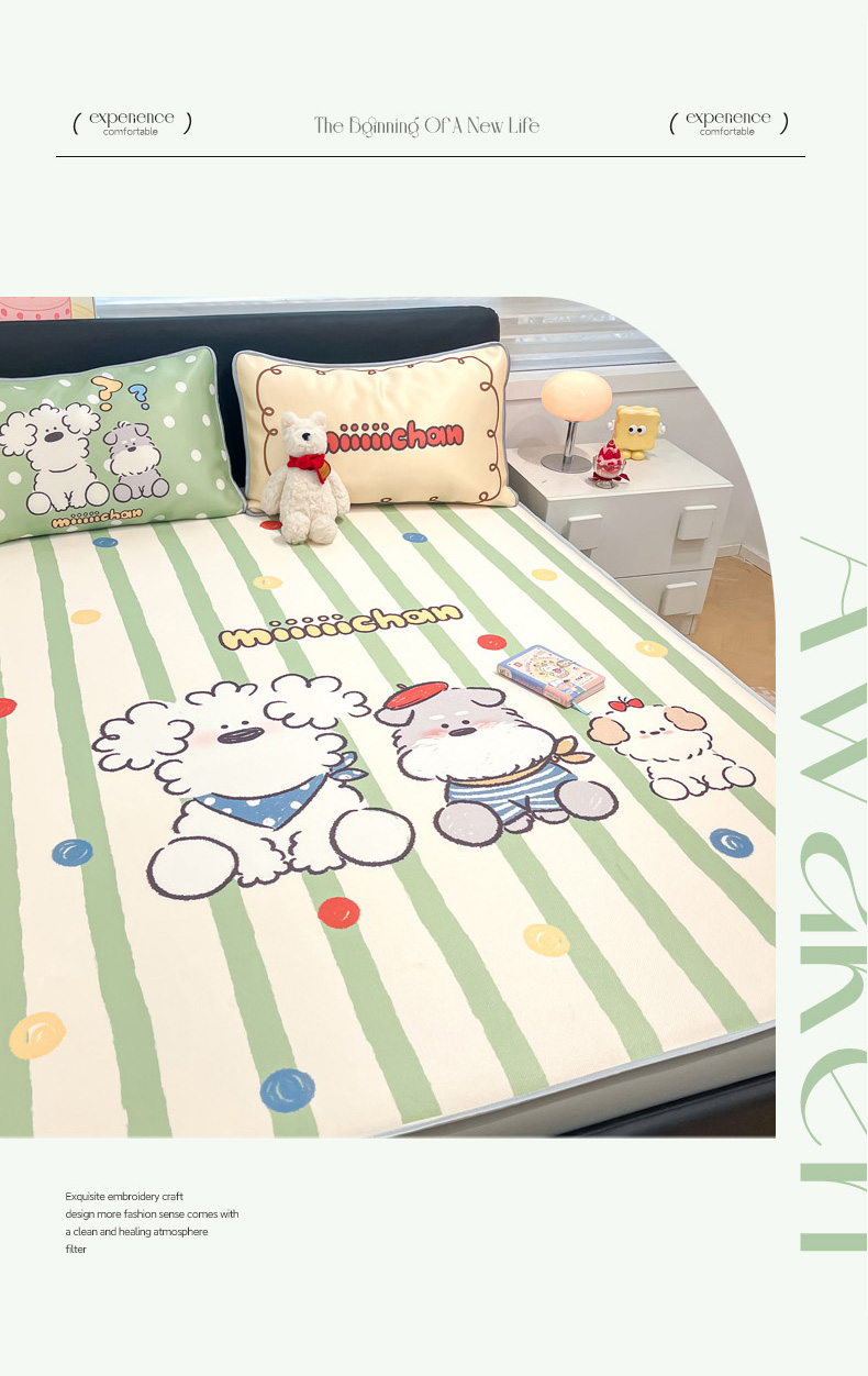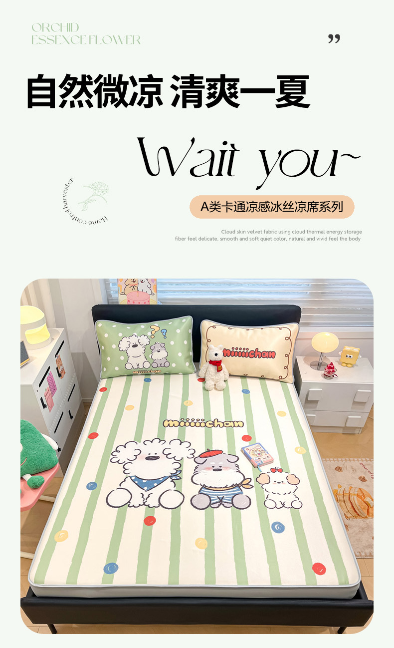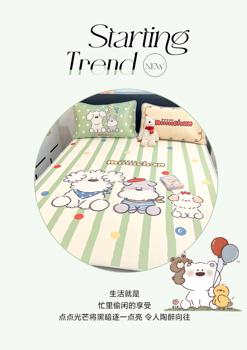 当前位置: 91家纺网 > 商品网购 > 床上用品 > 凉席 > 凉席套件 > 暮思家居 2026新款正版授权miiiiichan大版数码印花可机洗1200D冰丝席子凉席 彩色波点狗