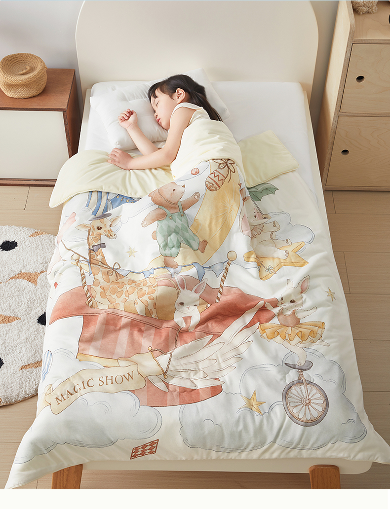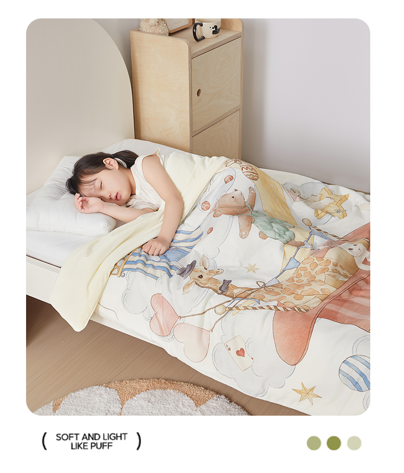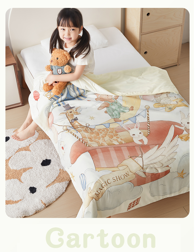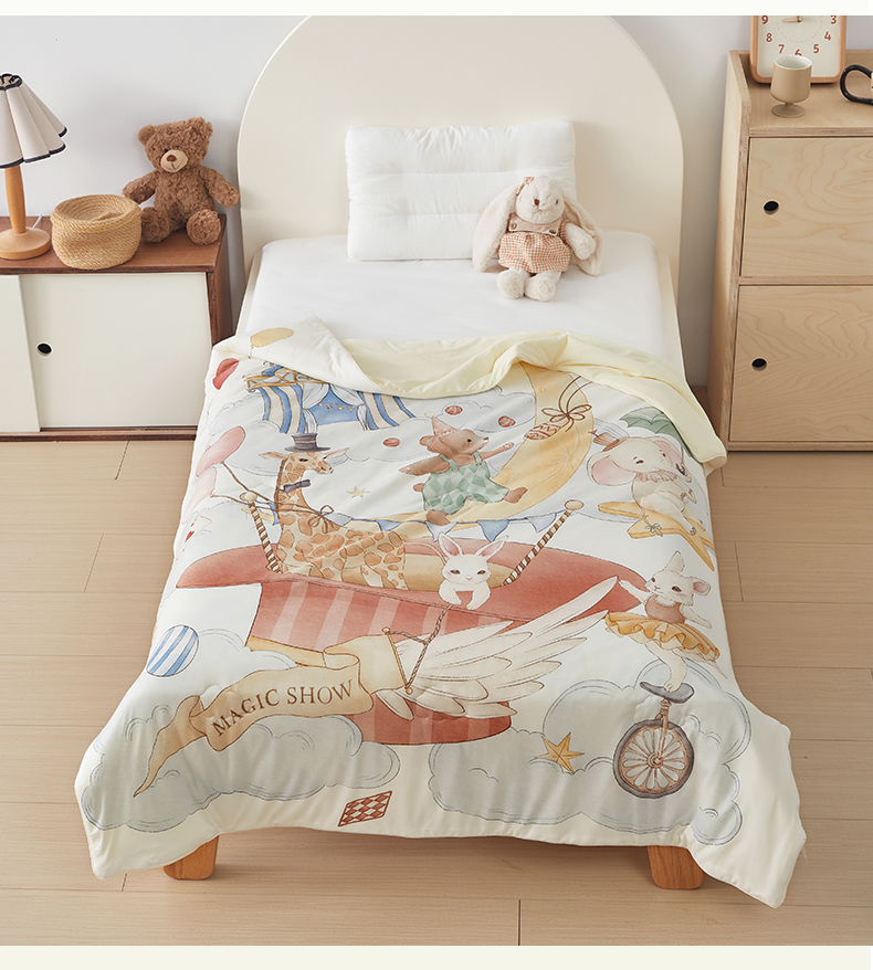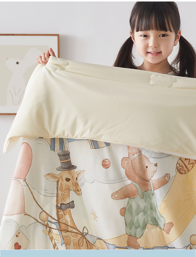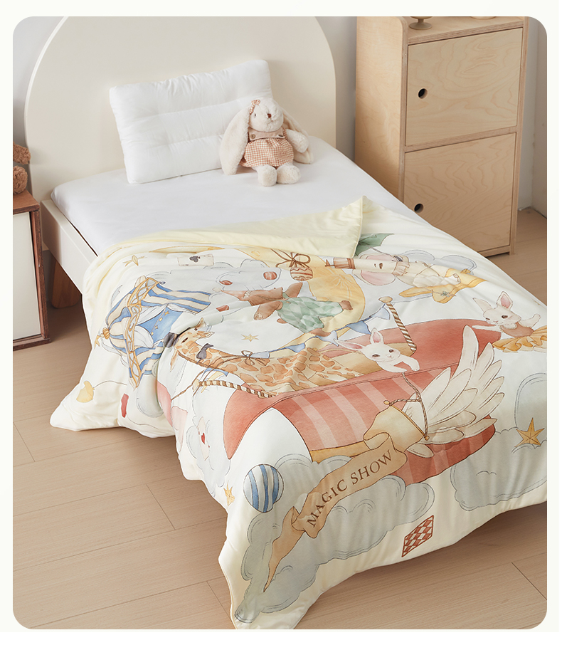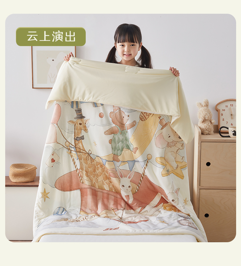 商品名称:荷马之梦 2026新款凉凉梦境-原创手绘母婴风针织凉感山茶蚕丝儿童双感夏被夏凉被空调被 云上演出