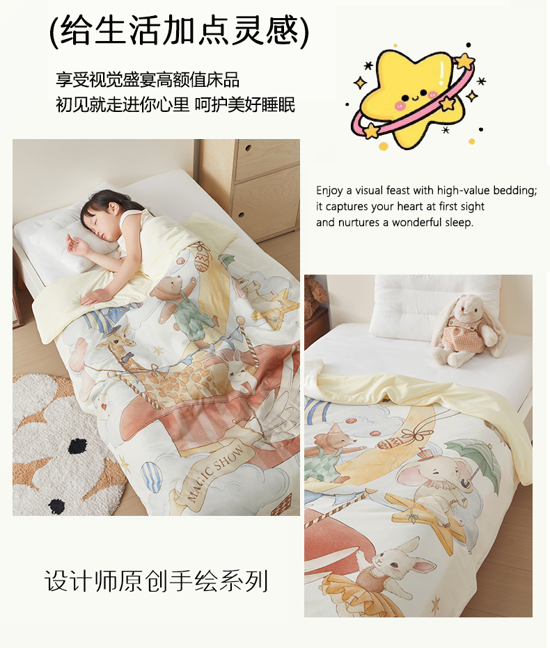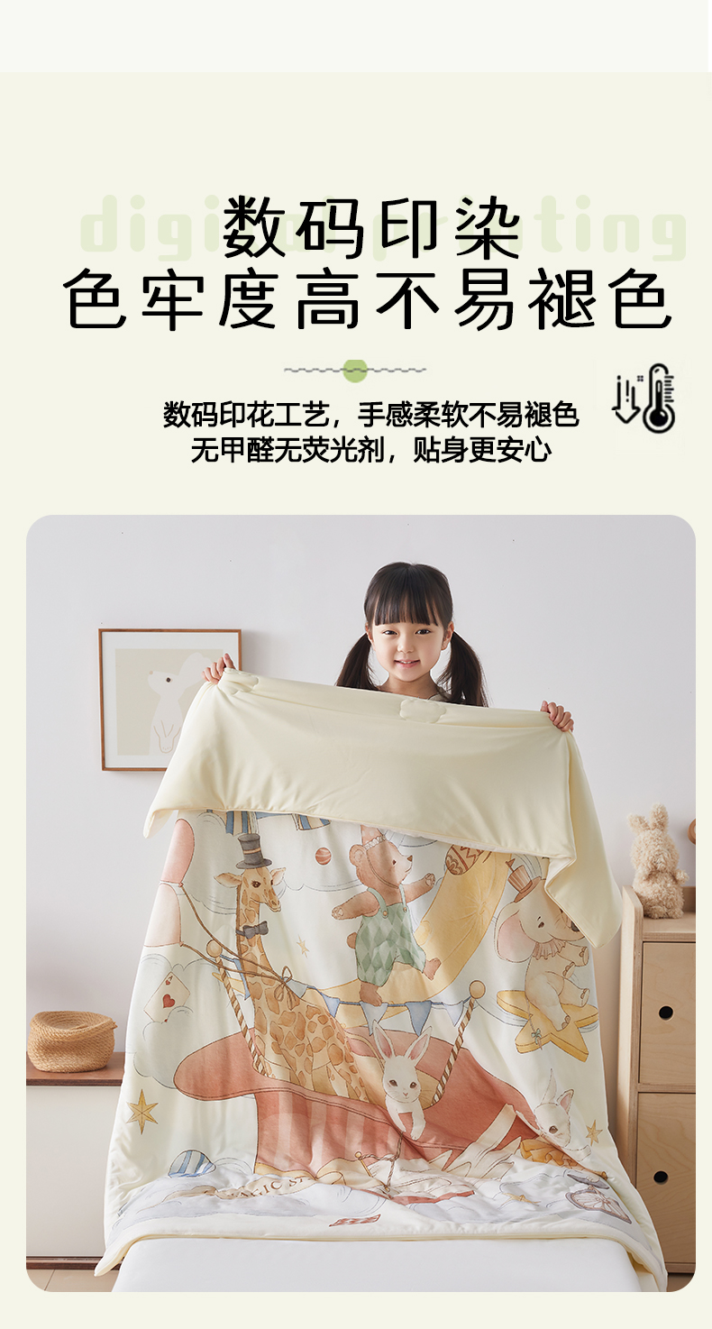 (总)荷马之梦 2026新款A类60s兰精天丝原创手绘卡通大豆纤维儿童夏被,花生企鹅,萌小狮,米米兔,胖达,亲亲恐龙