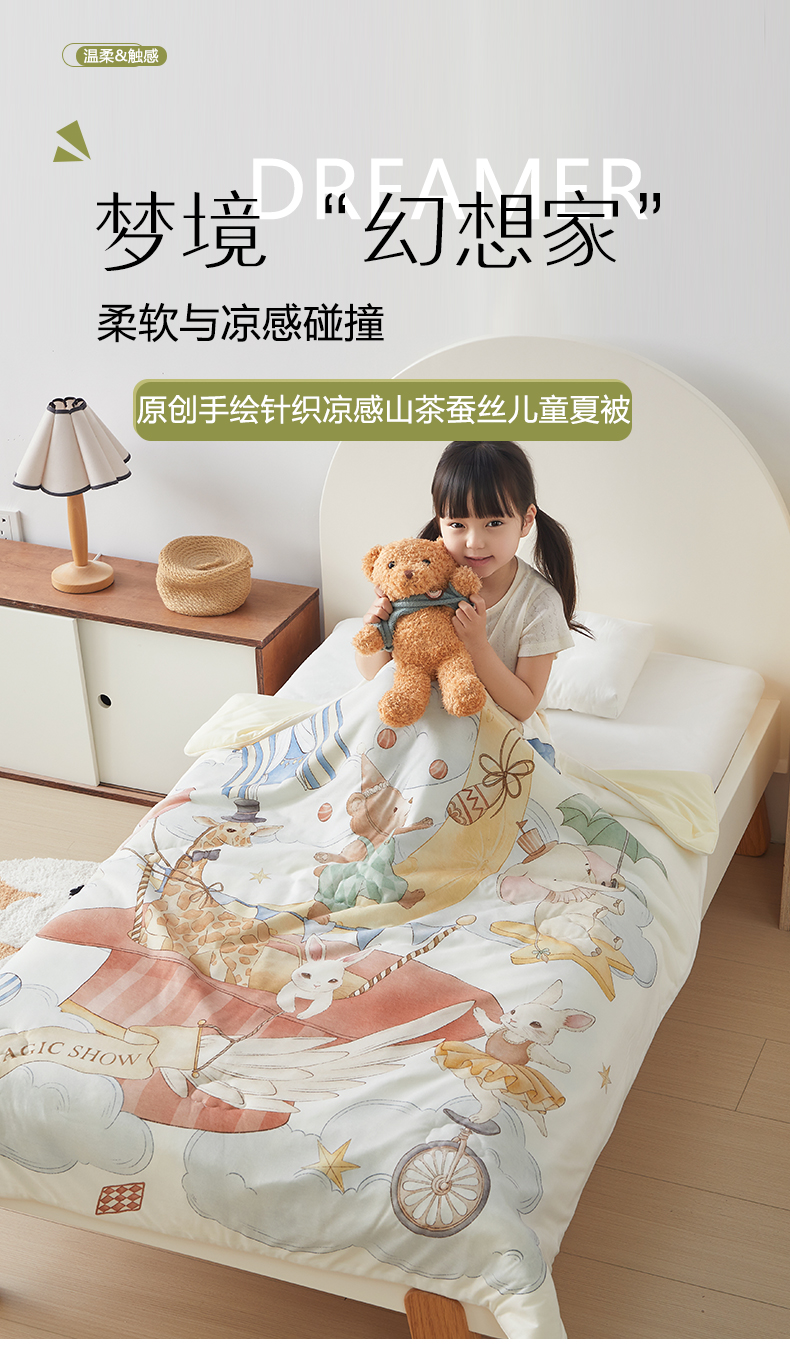 荷马之梦 2026新款凉凉梦境-原创手绘母婴风针织凉感山茶蚕丝儿童双感夏被夏凉被空调被 云上演出