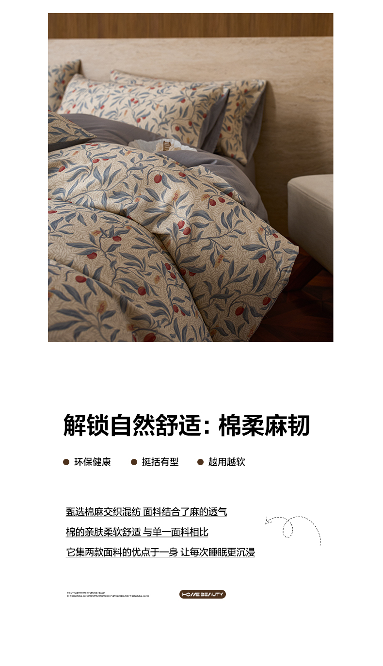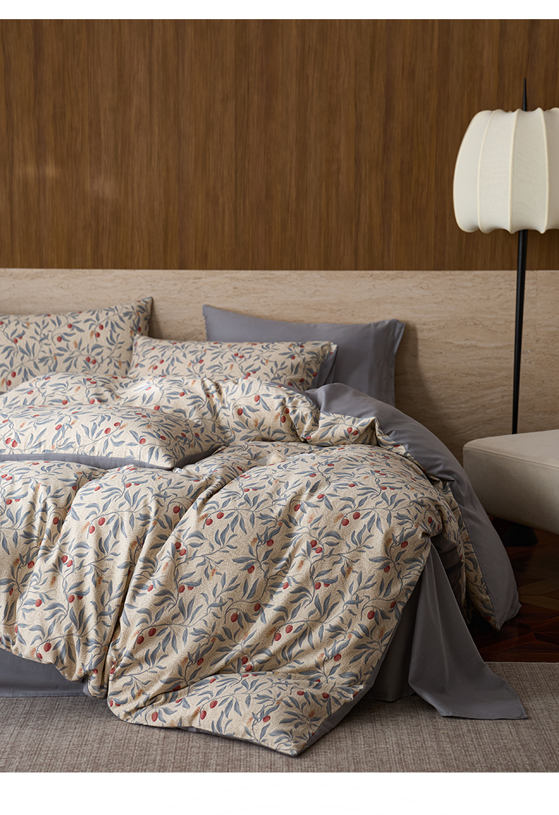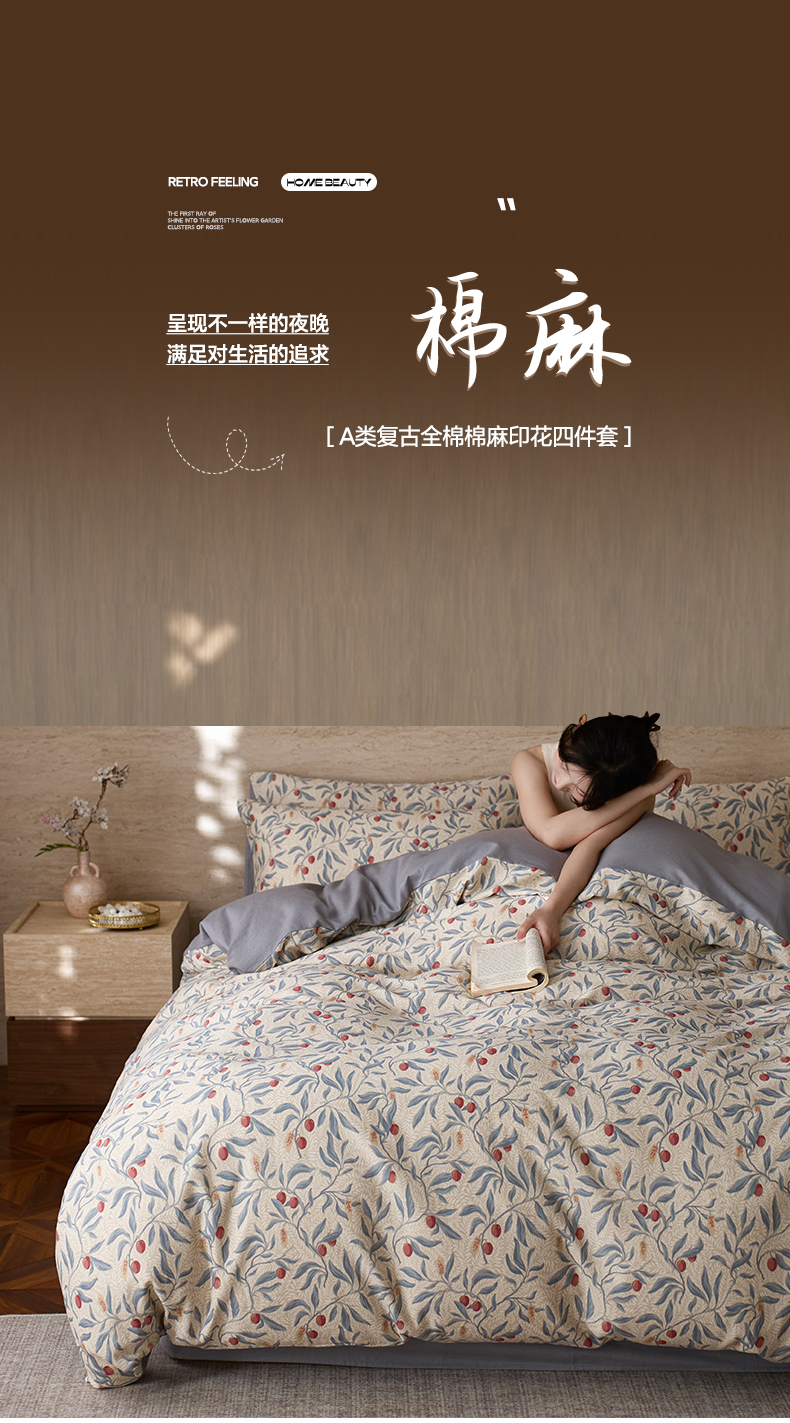如一 2026新款A类复古全棉棉麻印花四件套 硕果